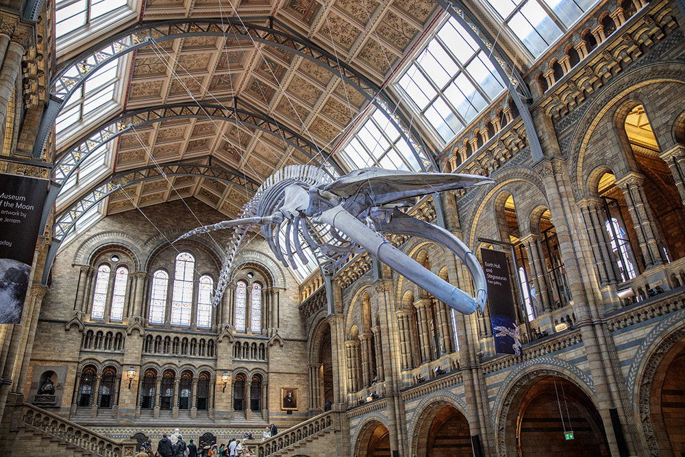 Скелет на женския син кит Надежда.