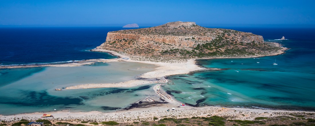Балос е лагуна с тюркоазен цвят на морето, фин бял пясък, на места леко розов и много плитка, кристално чиста вода. Цветът й преминава от тюркоаз в смарагдово зелено и достига до тъмно синьо в далечината. Един шедьовър на природата. Рано сутрин е най-доброто време да видите Балос без тълпите туристи. В топ сезона, в 9 часа сутринта е изключително спокойно. Истинска наслада. Тясна, пясъчна ивица и скали на лагуната свързват брега с малкият полуостров Тигани, който е с много плоска горна част. Оттам идва и името му. Балос и Елафониси са най-сниманите плажове на Крит, и има защо.