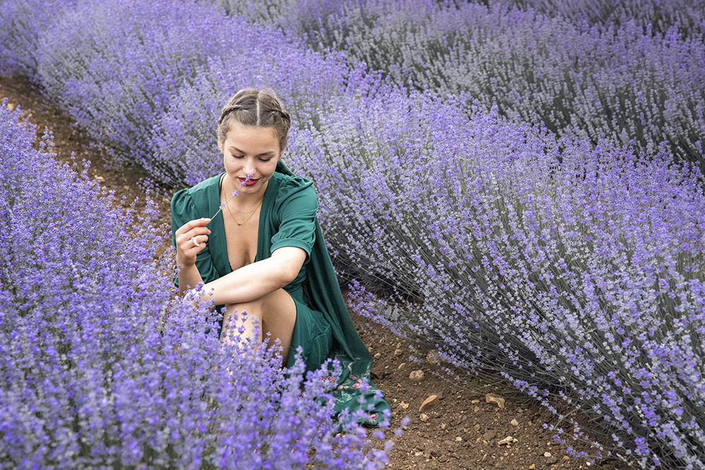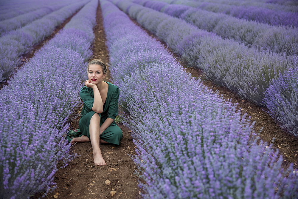 В първия ден снимахме портрети и пейзажи в изключително, добре поддържано поле. Лехите бяха почистени идеално. Посетихме още едно, което беше с живописна гледка, но лавандулата там не беше цъфнала. Затова се върнахме на първото. Денят беше облачен и залезът не беше в пълния си блясък, но това не ни развали хубавото настроение.