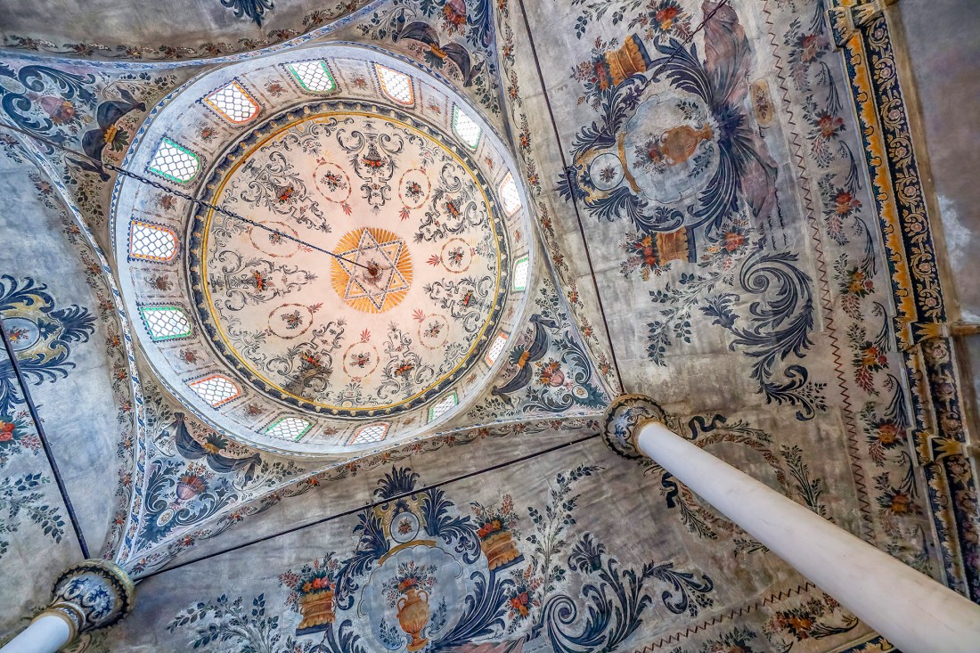 Композициите са нарисувани артистично, с размах. Използвани са шаблони за да се постигне еднаквия вид. Цялото великолепие от багри избухва в слънцето на купола, което е било заличено, незнайно защо, веднага след изобразяването му и е открито едва при реставрацията. Давидовата звезда, която е в центъра на купола, символизира пътя към рая и небето.
