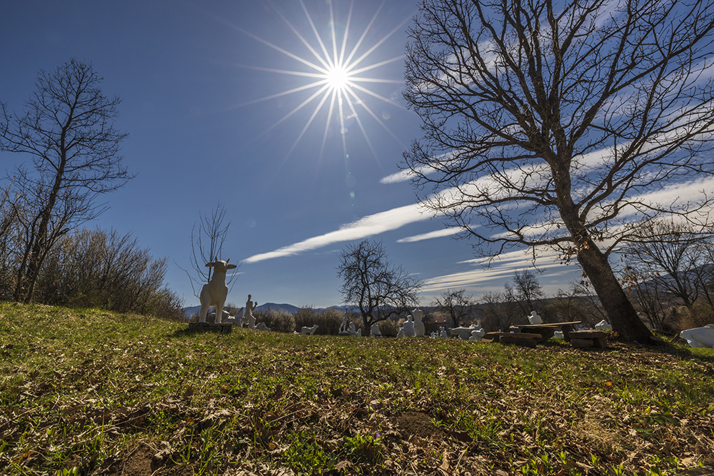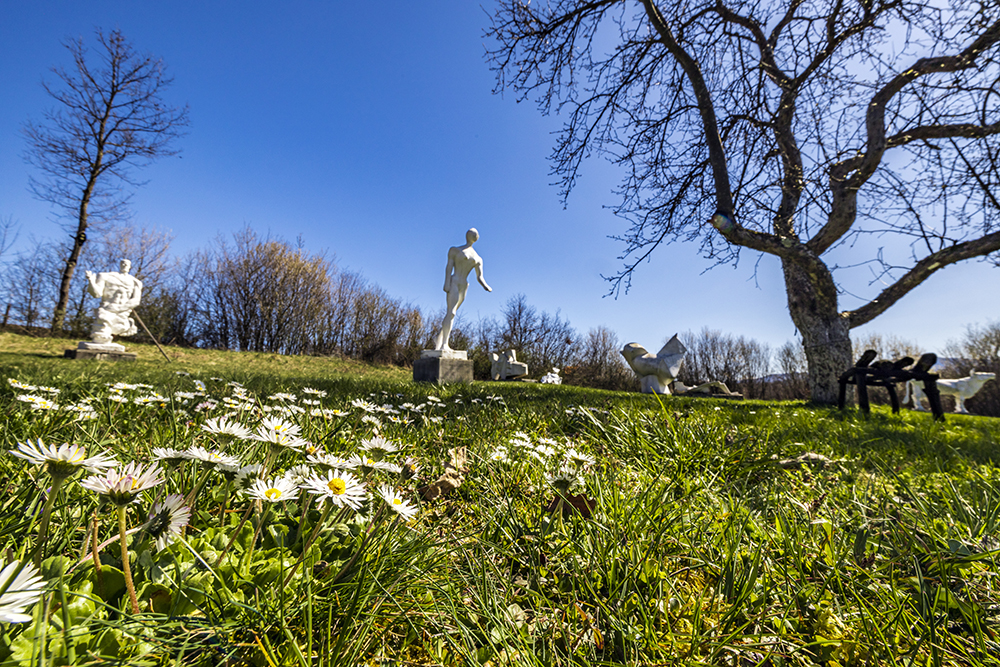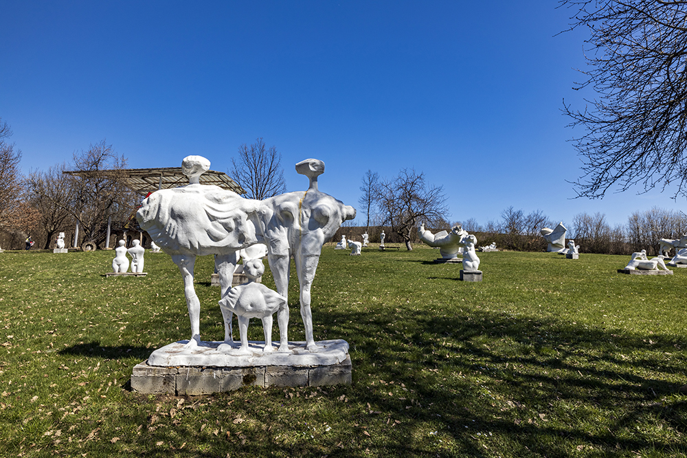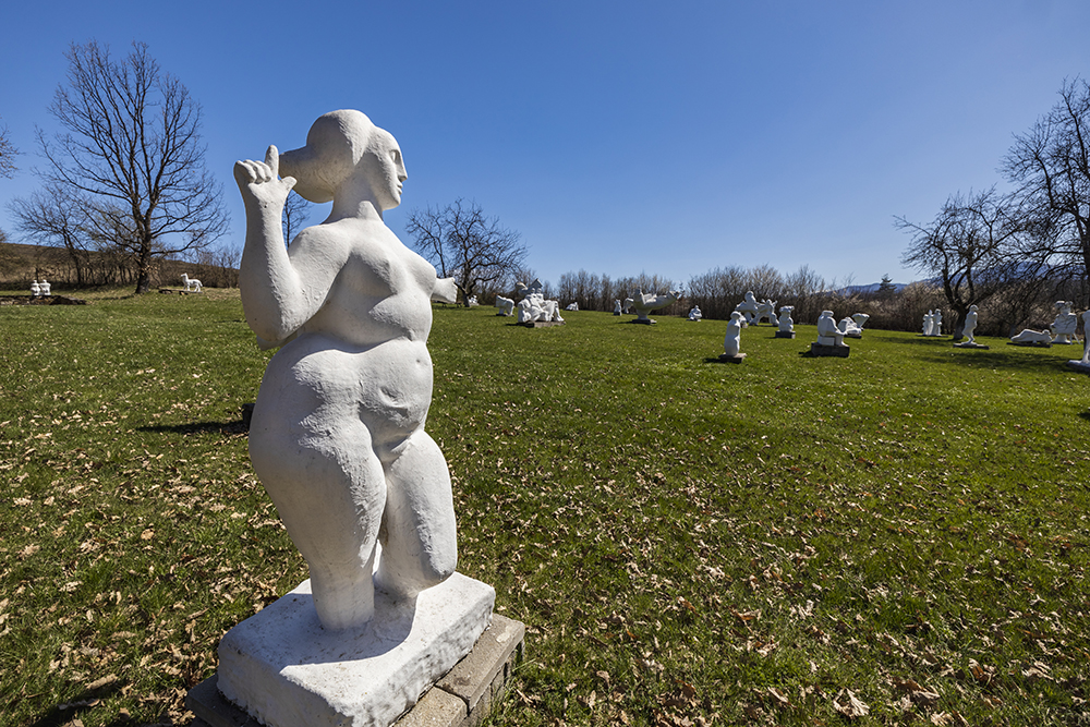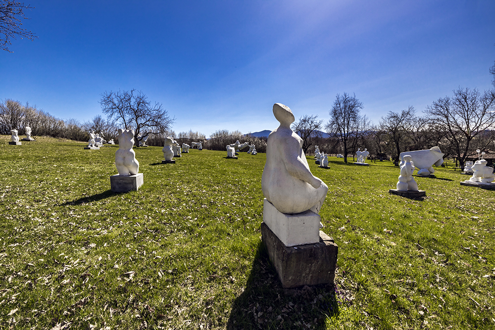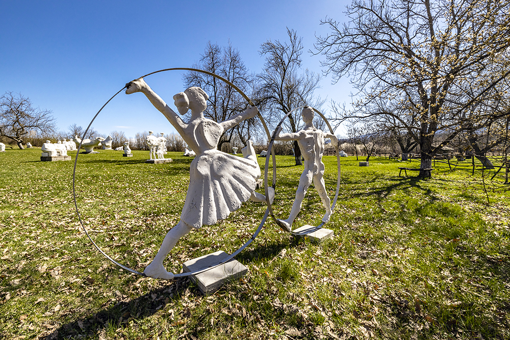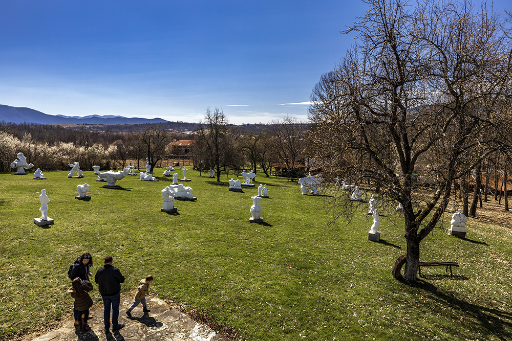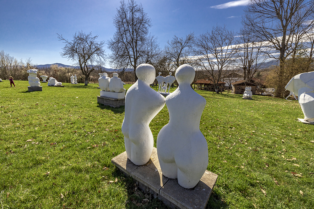Полимеризираните гипсови оригинали са подредени на площ от няколко декара. Експозицията на поляната и в горичката на арт галерията показва стабилното разбиране на автора за размерите на пластична творба в открито пространство. Витае съизмеримост между пластиките независимо от годините, в които са създадени. Фигурите са в реален мащаб и въпреки обемите пак остава достатъчно въздух и простор.