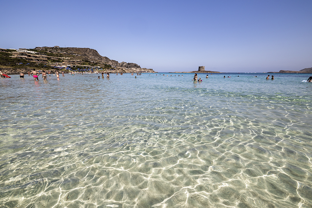 Кристално чиста вода с тюркоазен цвят и много фин бял пясък. Частта, която е срещу старата кула е скалиста, но гледката е красива. Срещу плажа Ла Пелоза е остров Азинара, който е национален парк. До него може да стигнете с корабче от пристанището на Стинтино.