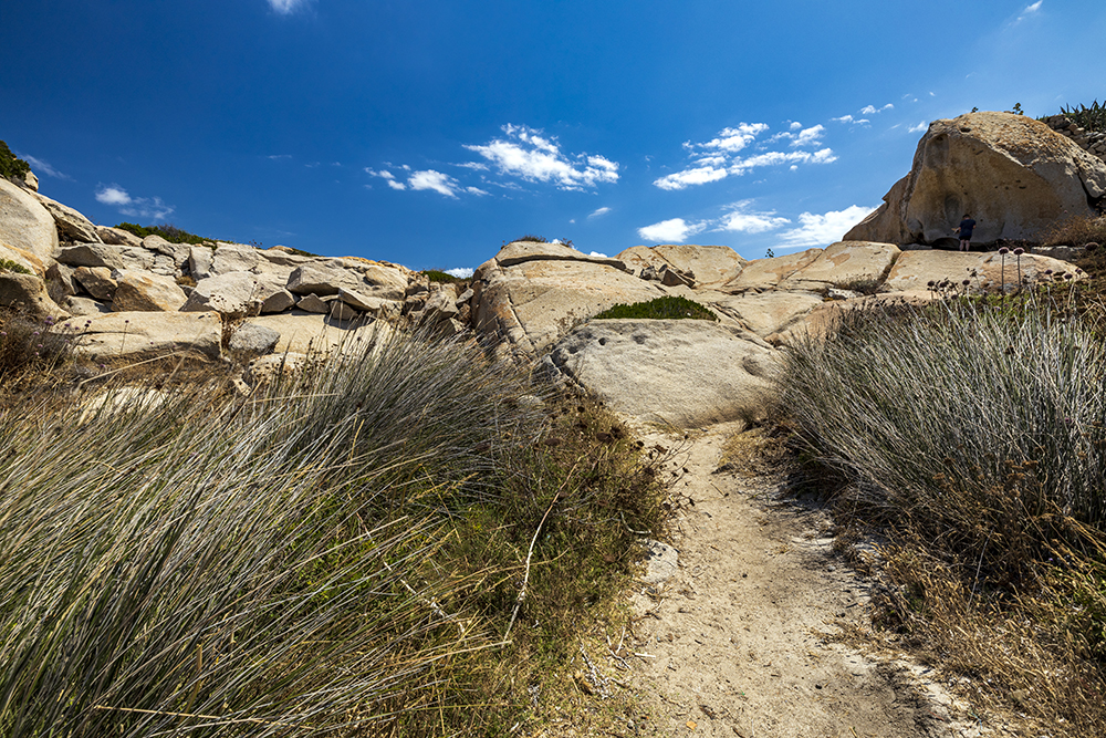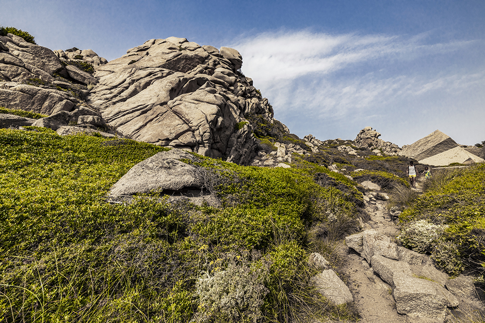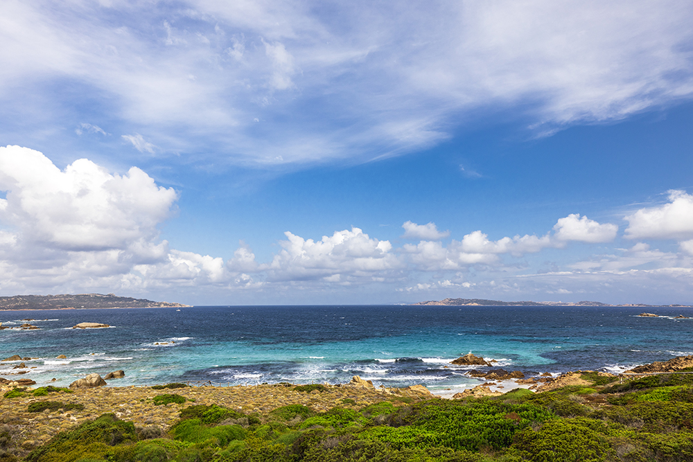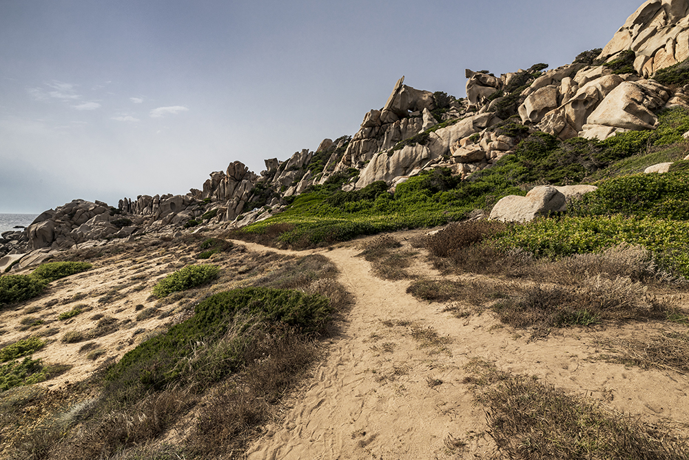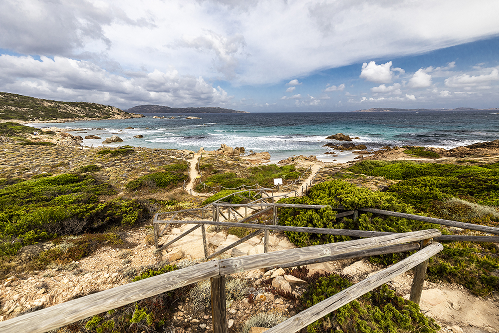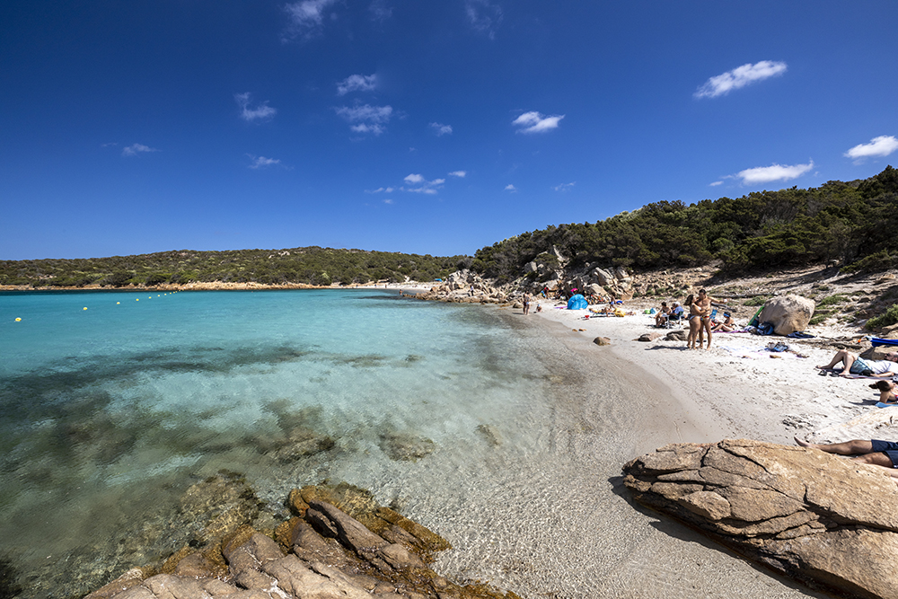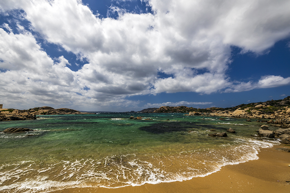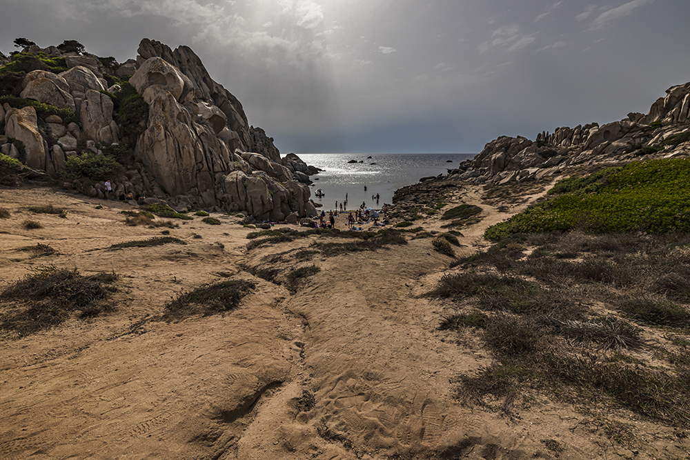 До един от най-красивите плажове на о.Капрера, може да стигнете единствено пеша. Около 2 часа от къщата на Гарибалди. Отпада и той от пъроначалния план за съжаление, поради липса на време. Затова се отправям към плажа Дуе мари в южната част на острова, който е лесно достъпен както с кола, така и с автобус. Красив залив със спокойна вода и божествен тюркоазен цвят. Остров Капрера е част от архипелага Мадалена. Всички острови са с тюркоазени лагуни, бели пясъчни ивици и скали с красиви форми.