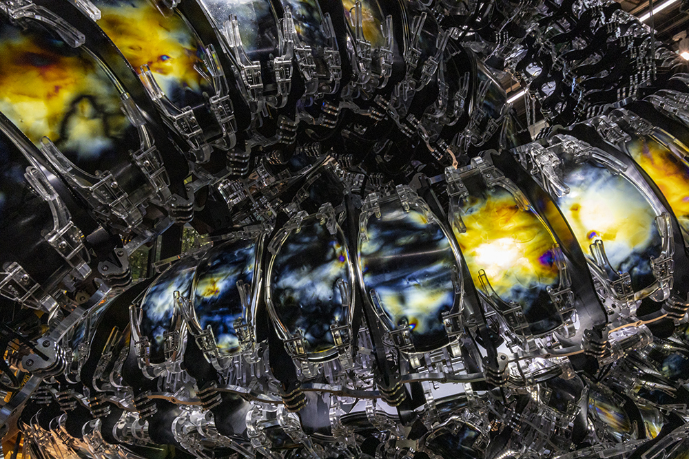 Аргос – подути слънца е голяма скулптура със система, състояща се от няколкостотин стъклени тръби, които мигат веднага щом открие субатомни частици. Тя незабавно изпраща сигнала, който ще задейства движението на Крома V. Подути слънца (буквално подути слънца) се отнася до разширяването и разпръскването на звездните частици в края на живота и появата на нови планети.