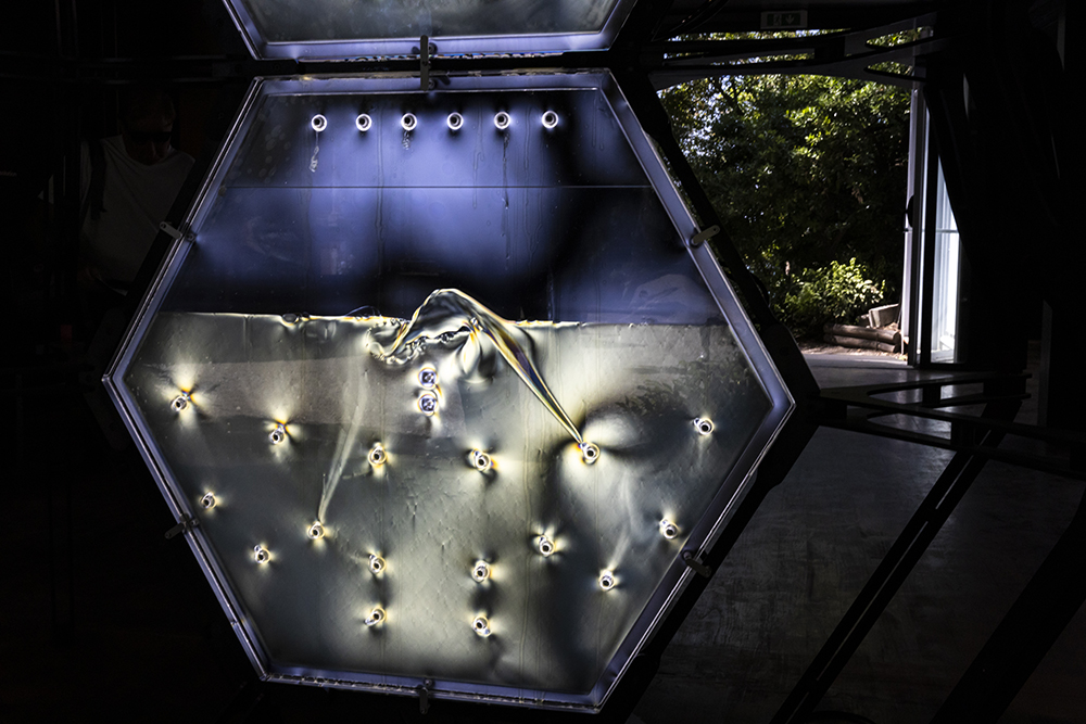 Връзката на художника с технологията е толкова обсебваща, колкото и връзката му с водата. Наличието на тази връзка става невидимо при отдалечаването от идеята за спектакъл и празнуването на новите технологии, но художникът предоставя почвата за преосмисляне на инструментите и методологиите, които използваме, за да посредничим при създаването на образа. Технологията тук ни поставя в позиция, която предлага как да слушаме образи и как да слушаме тишината.