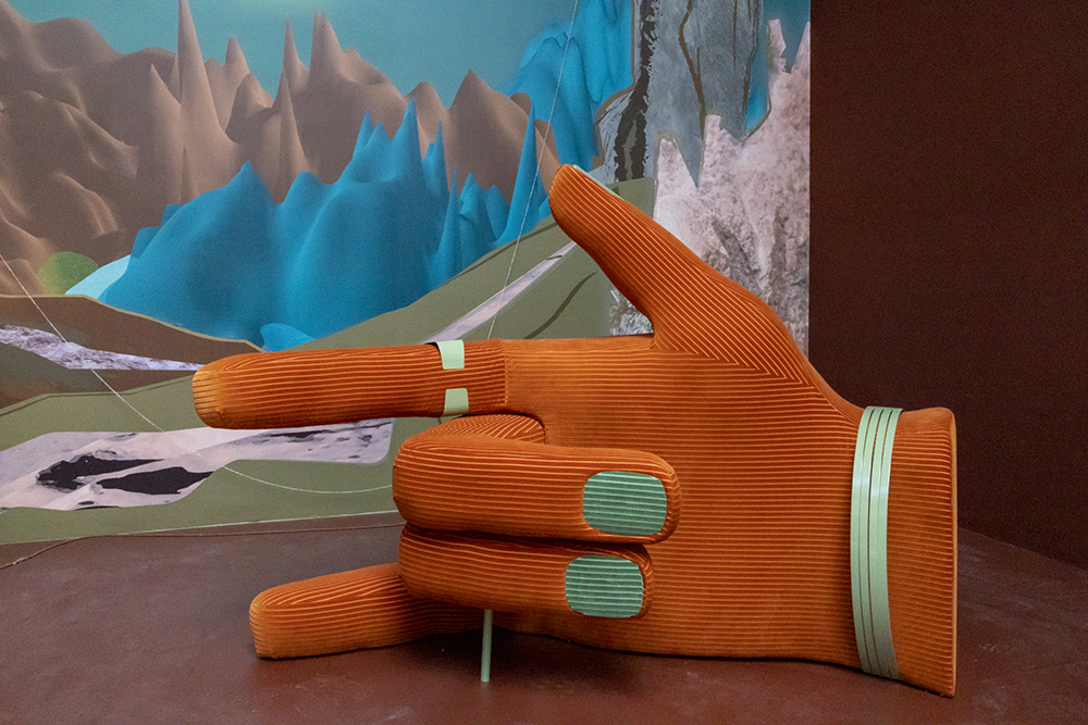 Обширната инсталация на Якоб Лена Кнебл избягва ясни класификации. Тя показва текущия разпит на художника от 70-те години на миналия век, особено социално-политическите въпроси и историята на изкуството и дизайна от това десетилетие, и отразява тяхното мощно влияние върху днешния ден. Ключови аспекти в този контекст включват идентичността и възможностите за нейната трансформация, местата на нейната постановка и въпроса за копродуцентите и механизмите на изключване. Сценографията на работата на Кнебл в павилиона е доминирана от разкош. – Инсталацията на Ашли Ханс Шейрл е входящ автопортрет като художник. Червената кадифена завеса е отместена от нарисуваната ръка на художника. Както в театрална авансцена, ние виждаме шахматно подреждане на плоски части от декори, които в същото време изграждат слоевете на тази разгъната картина. Когато влизаме, две очи с различен размер ни гледат от най-задната стена с амбивалентно емоционално изражение.