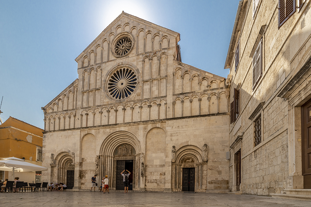 Задарската катедрала Св. Анастасия е построена през 12-ти и 13-ти век, върху по-стара сграда от 9-ти и 11-ти век и която е издигната на мястото на раннохристиянска базилика, така че първите етапи на катедралата датират още от 4-ти и 5-ти век. Базиликата е посветена на Свети апостол Петър, но когато задарският епископ Донат получава мощите на сирмийската мъченица Света Анастасия, в Задар, известна като Стошия, в началото на 9 век, базиликата е кръстена на нея.