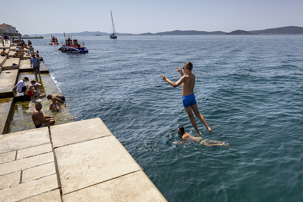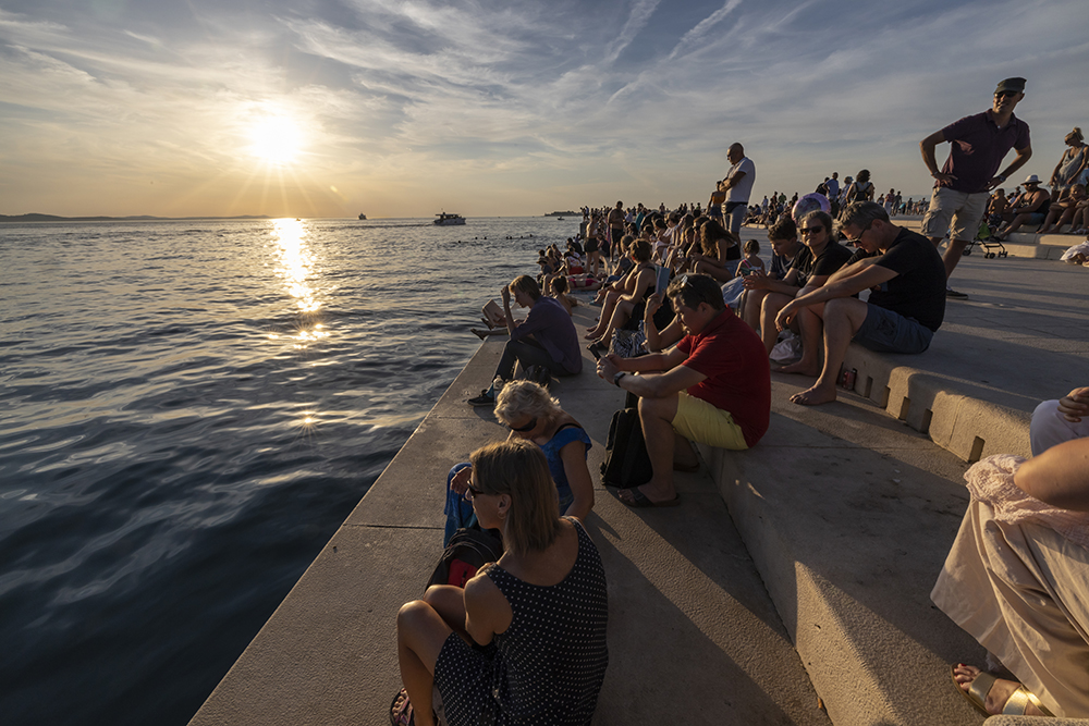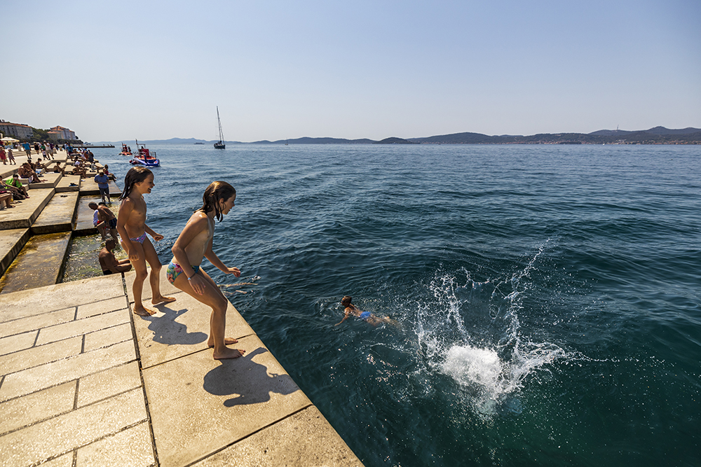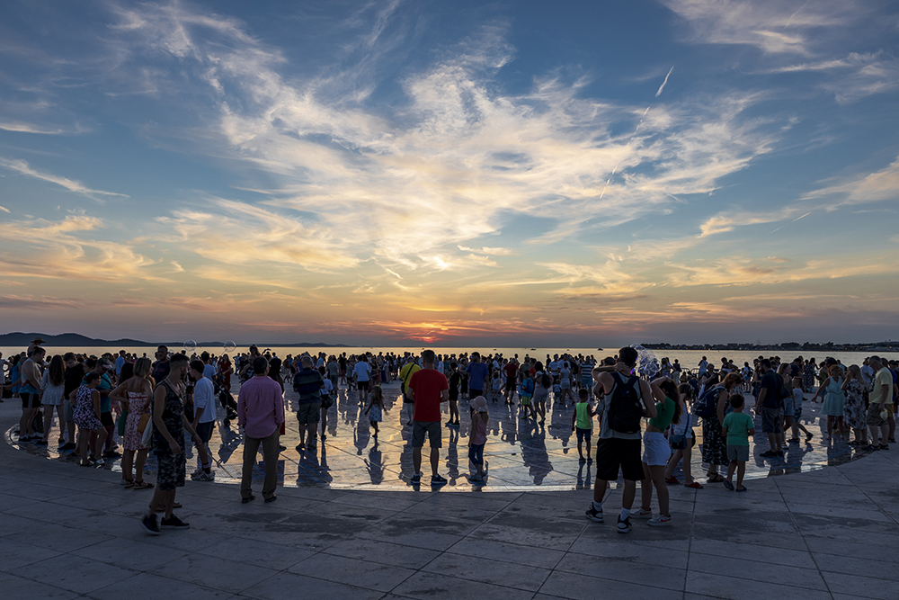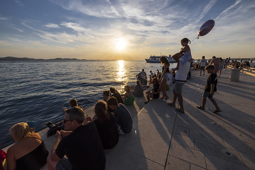 Отправяме се към две от най-новите забележителности на Задар създадени през 21 век. Първата е Морският орган. Представлява стъпаловидна конструкция точно до водата, на която може да седнете и да наблюдавате минаващите кораби и лодки. Под стълбите има тръби с различна големина и ъгъл. Движението на морето избутва въздух и взависимост от размера и скороста на вълните се чуват музикални акорди. Морето е диригента на тази морска симфония.