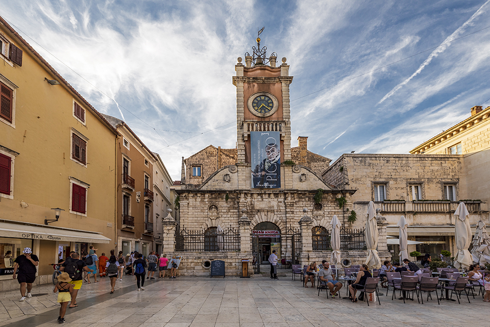 Започваме от Народния площад, който и до днес е център на обществения живот в Задар. Тук се намират кметството, градската лоджия и църквата Св.Лаврентий. Много хора се наслаждават на атмосферата му, седейки в едно от заведенията на площада на чаша ароматно кафе, цветен коктейл или освежаващ сладолед.