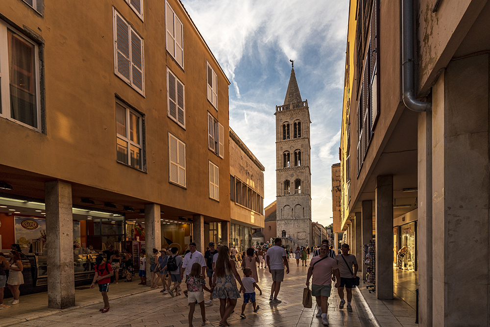 Главната артерия на града е улица Широка. По нея има основно магазини и заведения за бързо хранене. Фасадите на сградите са много семпли. Не след дълго, стигаме до църквата Св.Донат и Римският форум. Той представлява пример за развит форумски комплекс, който някога е бил един от най-важните сред адриатическите древни градове.