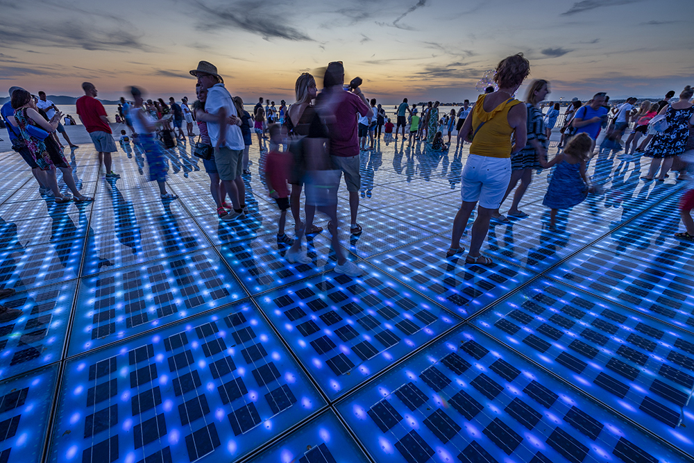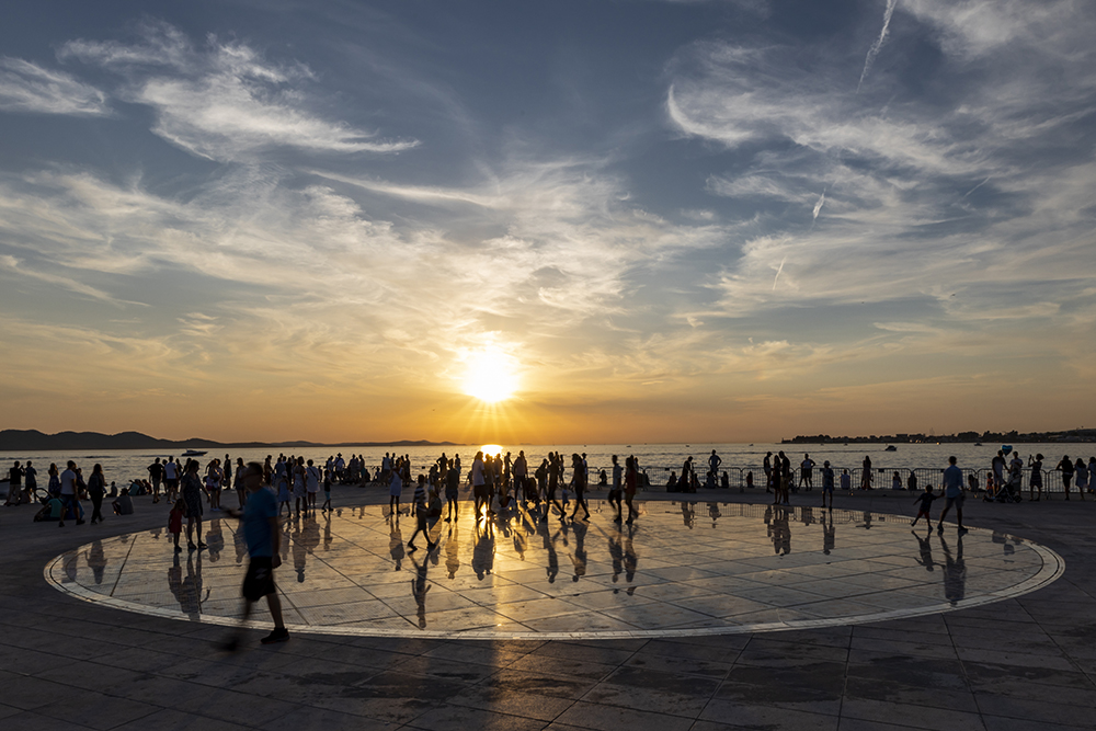Безпорно най-интересното в Задар за мен е арт инсталацията Поздравът към Слънцето. Тя е с изглед към Задарския канал, островите и световноизвестния залез. Съставена е от многослойни стъклени соларни панели във формата на кръг с диаметър 22 метра. През целия ден събира енергията на Слънцето и я трансформира в електричество, което се използва през цялата нощ. След като и последният лъч се скрие зад хоризонта, кръгът започва да свети и сменя цветовете си.