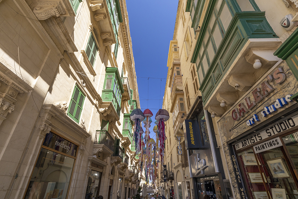 На сутринта започвам разходката от Валета. В началото на града е Парламента на Малта. Съвременна сграда построена по проект на арх.Ренцо Пиано. Чудесно се вписва с останалите сградите, които са с характерните малтийски балкони в контрастни цветове. Наричат ги „галерия“. Това е типичен елемент от народната малтийска архитектура, състоящ се от богато украсен затворен дървен балкон. Точно до Парламента се намират останките от кралската опера, които днес са превърнати в театър на открито.
