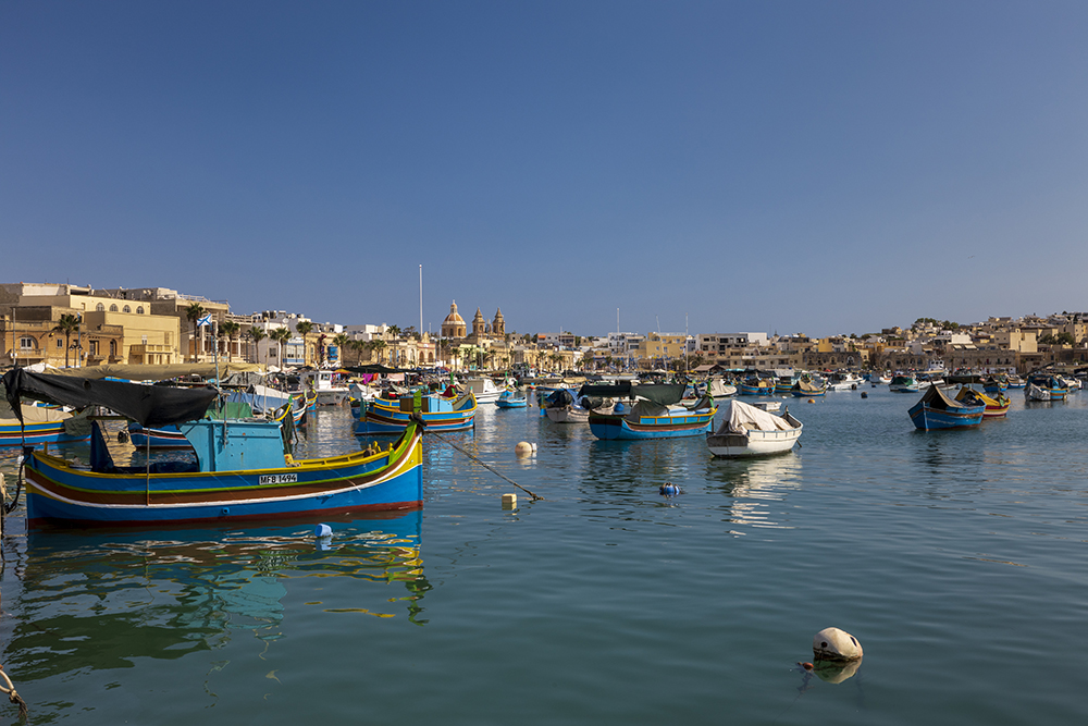 На следващата сутрин съм в рибарското градче Маршаслок. Неделния пазар тук е събитие за хората в града. На крайбрежната улица има сергии със всякакви стоки, включително и храна. Цветните лодки са един от символите на Маршаслок. Основно са боядисани в синьо, жълто и червено. Именно от тук тръгват туристическите лодки към една от природните забележителности на о.Малта – Басейнът Св.Петър.