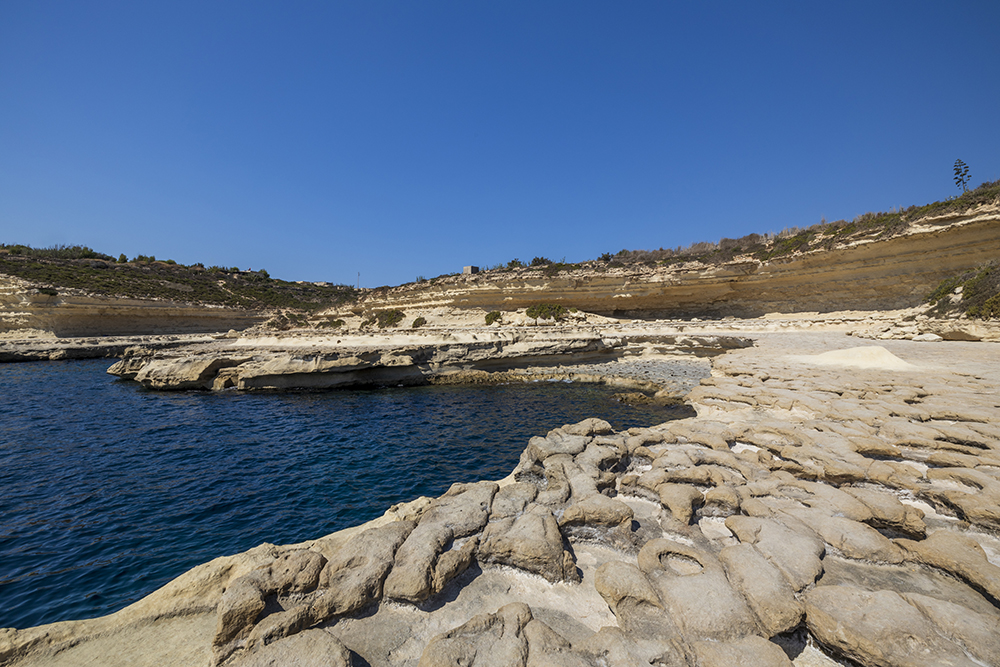 Малък залив с варовикови скали с извити форми и тюркоазена вода. Основното забавление тук е скачането във водата. Мястото е популярно сред туристите, но няма тълпи от хора. В единият край на залива има обособени стълби от самите скали, където може да влезнете в морето. Докато плувах видях възрастен местен жител със своето куче да скачат заедно във водата. Хората се радваха на четириногия смелчага, който се мяташе в морето в синхрон със своя стопанин. В последствие разбрах, че те са се превърнали в атракция на басейна Св. Петър.