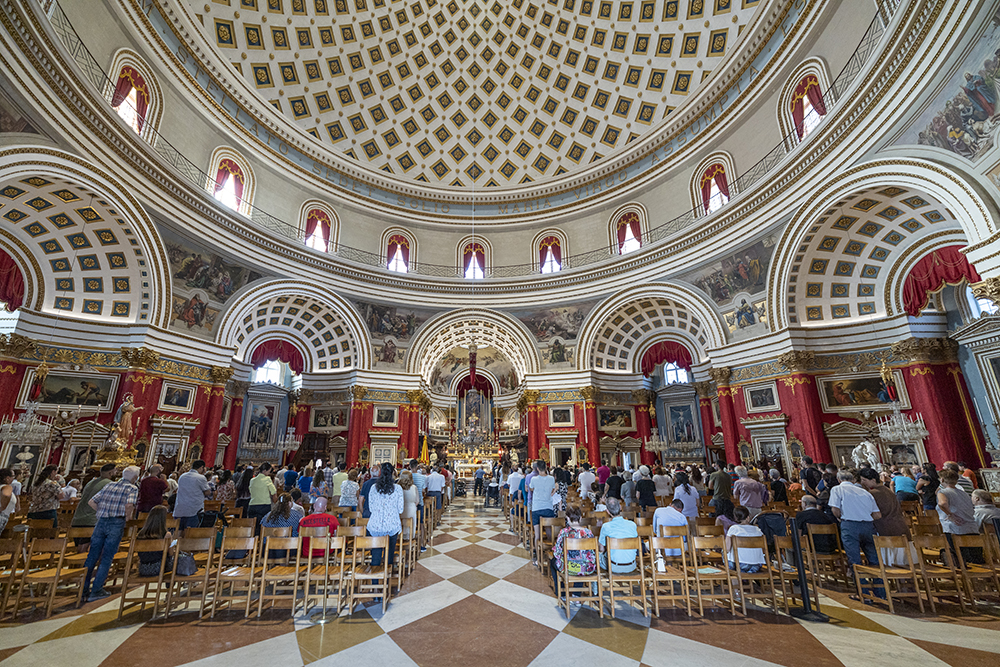 В съседния град Моста спирам за да разгледам Ротондата. Изключително красив храм и един от емблематичните за острова. Архитектурата е базирана на Пантеона в Рим. Влизайки вътре попадам по средата на тържествена меса.