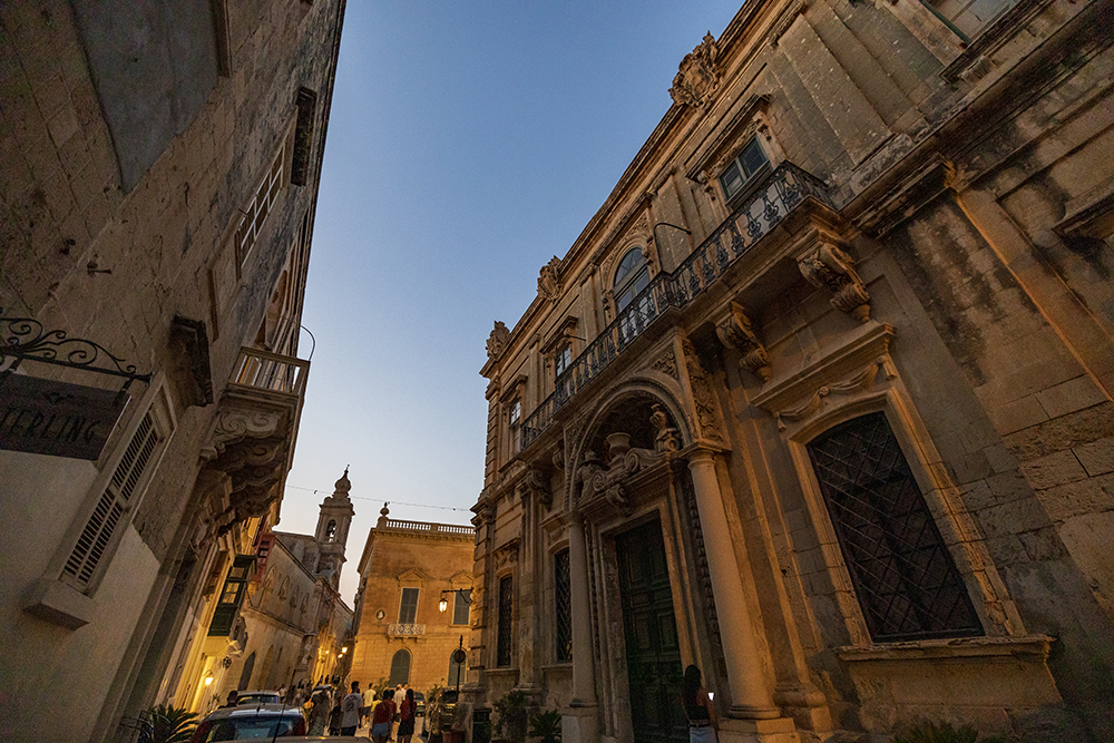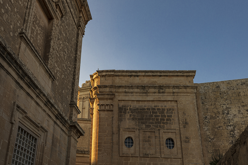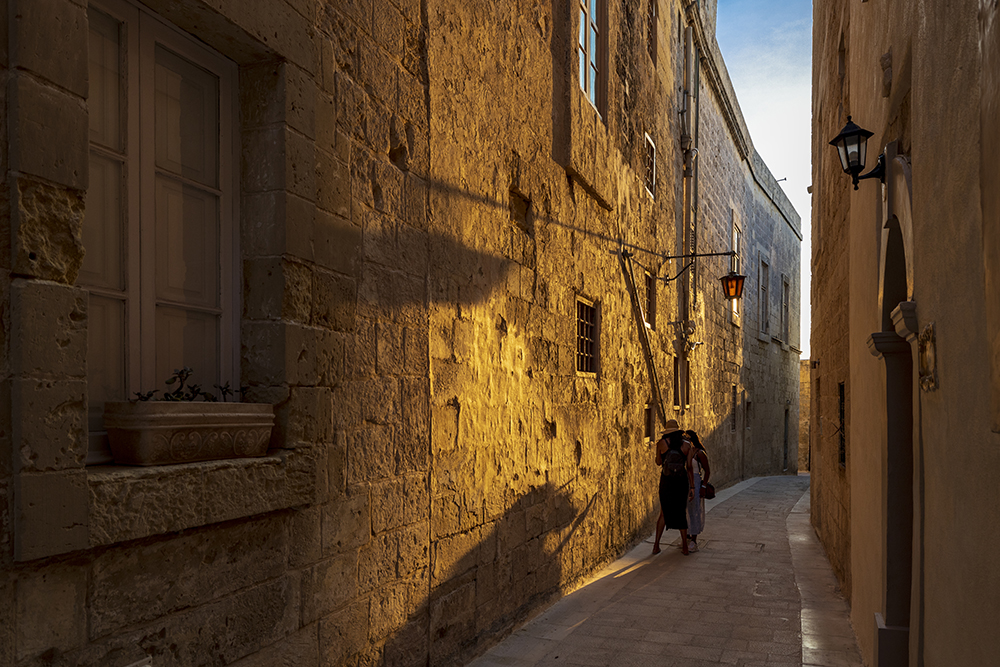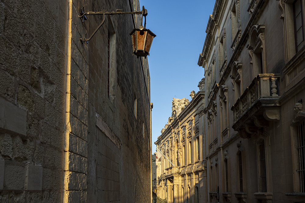 Последния град за деня е старата столица Мдина. По съвет на собственичката на къщата, в която бях отседнал, влизам в града малко преди залеза, когато голяма част от туристите са си тръгнали и цари спокойствие. Още пред главната порта на града, местен жител ме вижда, да снимам и започва да ми разказва, къде е била старата порта. Наложило се е да я преместят за да построят двореца Вилхена.