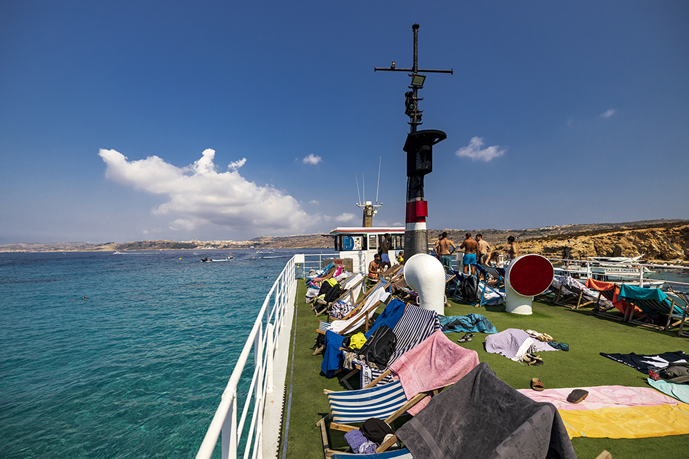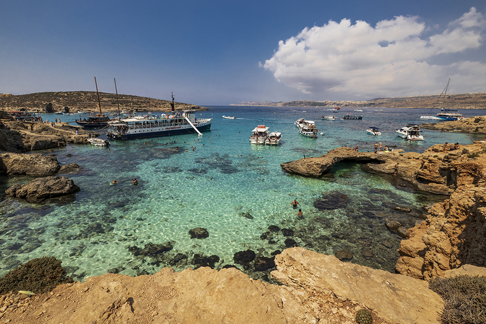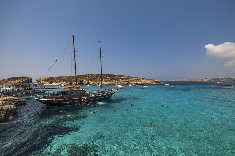 На следващия ден пътувам към островите Комино и Гозо. Като главната цел е Синята лагуна. Кристално чистата вода в цветове на тюркоаз и смарагд създават красива гледка, но тълпите туристи развалят цялото преживяване. Караваните за храна и напитки също допринасят за това. Нашият кораб имаше пързалка, по която всеки желаещ се спуска за да се потопи в разкошните води на Синята лагуна. Определено да плуваш в тези води е много приятно. Но, да останете на плажа е меко казано неприятно. Пясъчната ивица е много малка и тясна и съответно кърпите са плътно една до друга. На палубата на кораба е много по приятно, ако желаете да се наслаждавате на слънчеви бани.