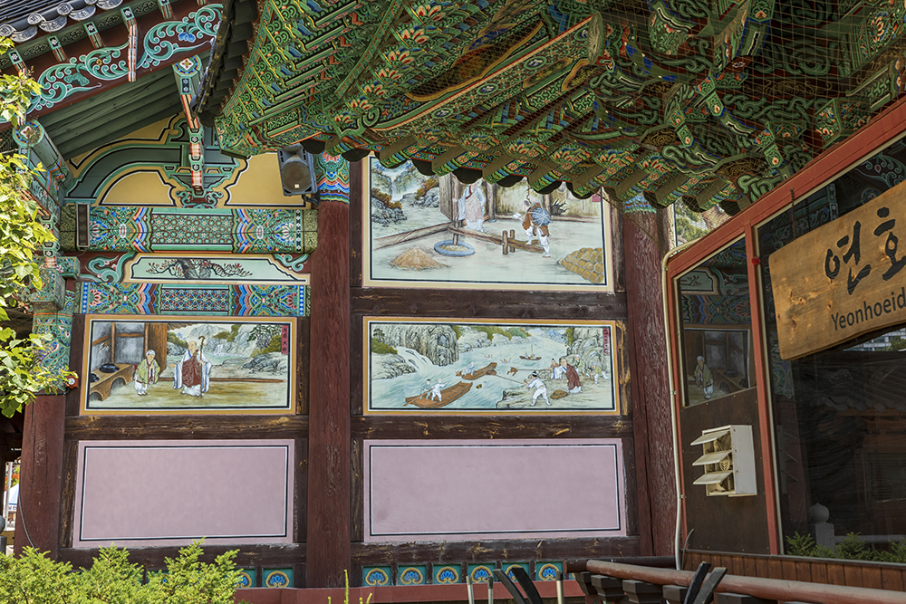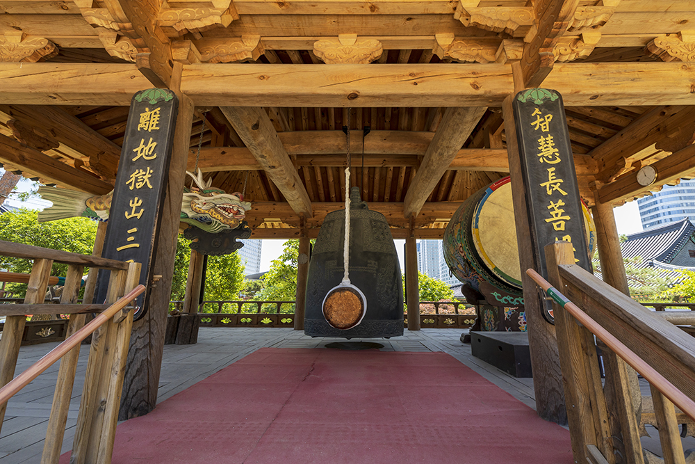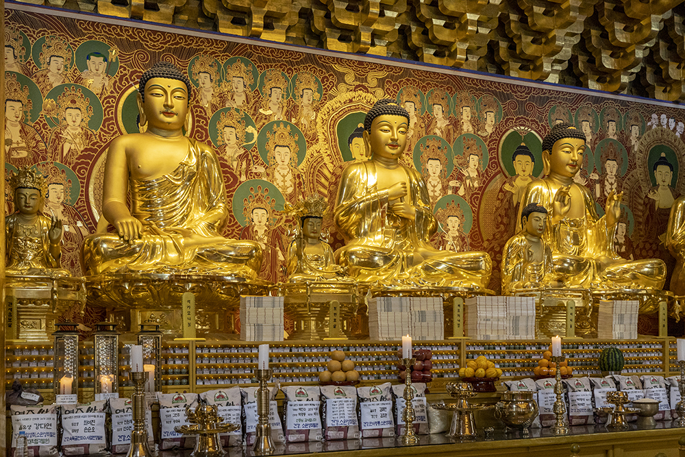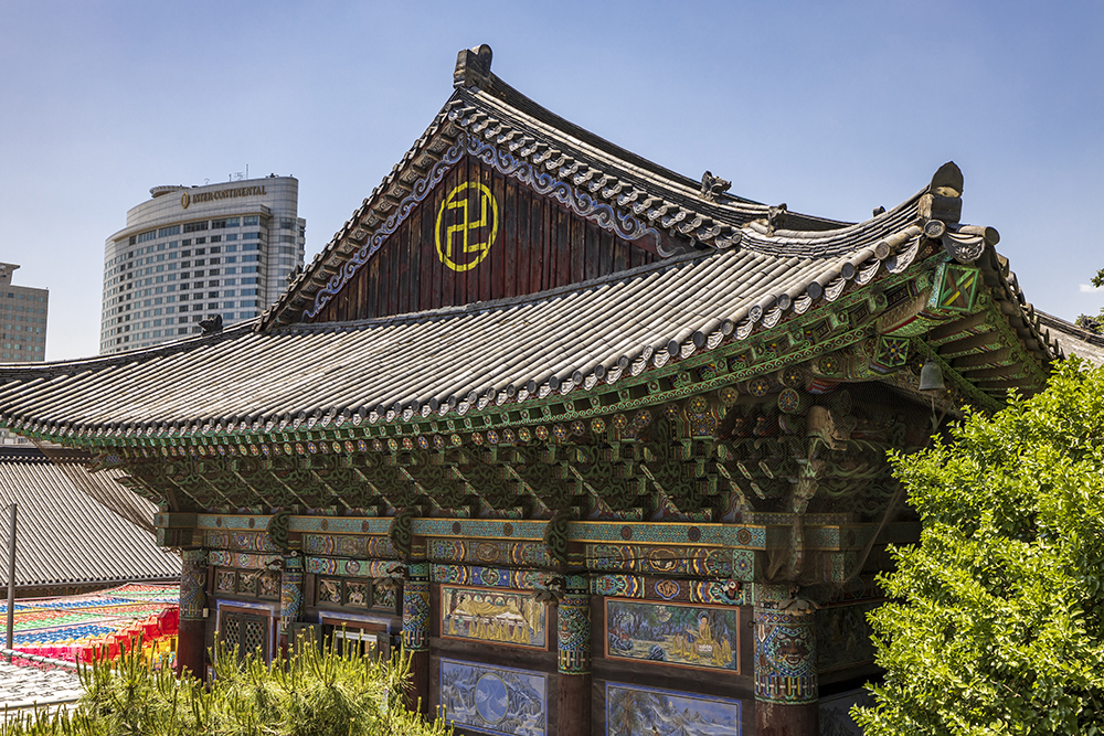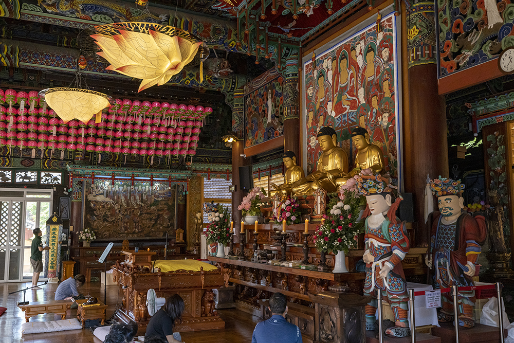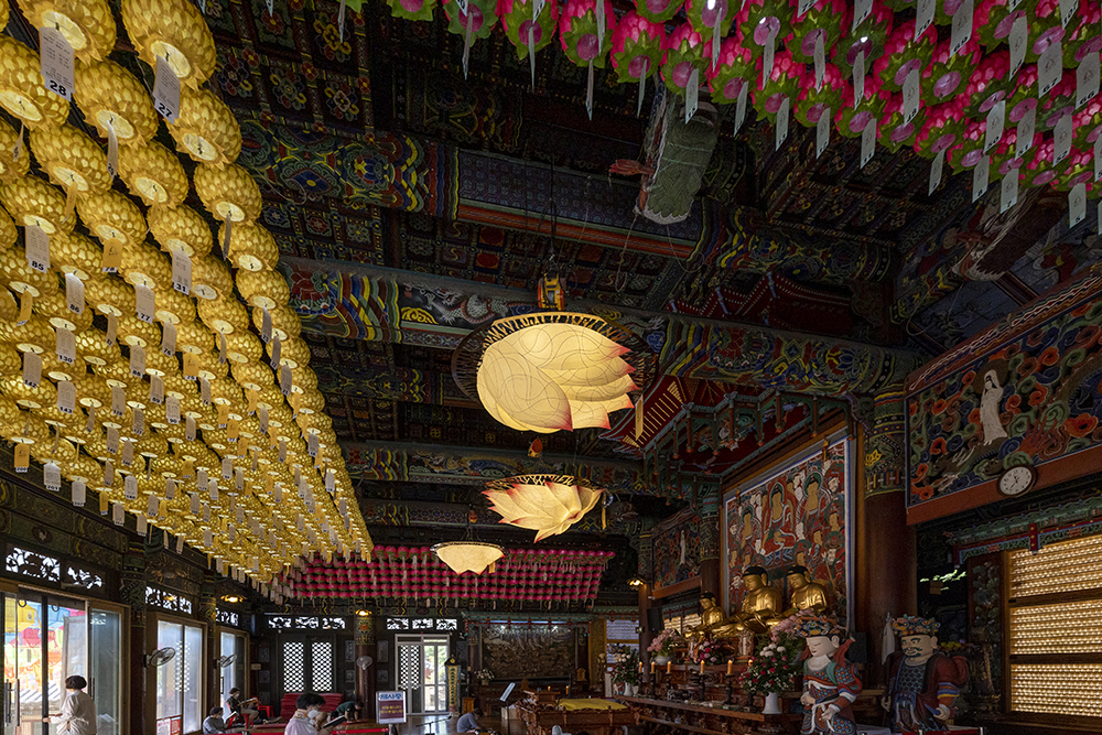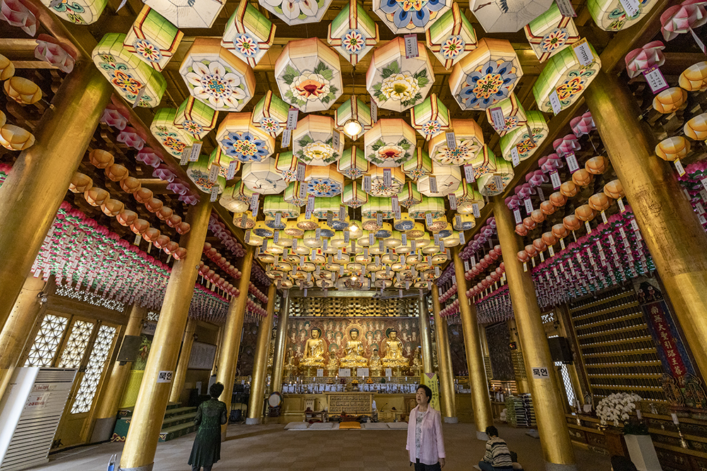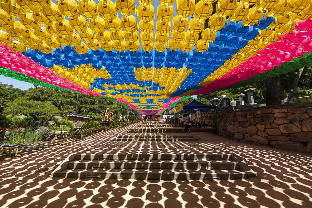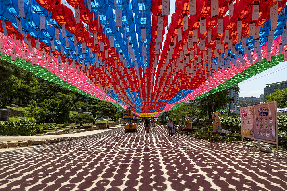 Точно срещу МОЛ Starfield Coex е една историческа забележителност – храма Бонгеунса. Само няколко метра след като минах през главната порта, попаднах под нещо наподобяващо арт инсталация. Всъщност това беше украсата за рождения ден на Буда, който предстоеше след няколко дни. Хиляди хартиени фенери в различни цветове, закачени един до друг на специална конструкция образуваха огромен навес над всички пътеки в двора на храма. През деня се получаваше шарена сянка с геометрична форма. Имаше човек, който поставяше пожелания на всеки един фенер.