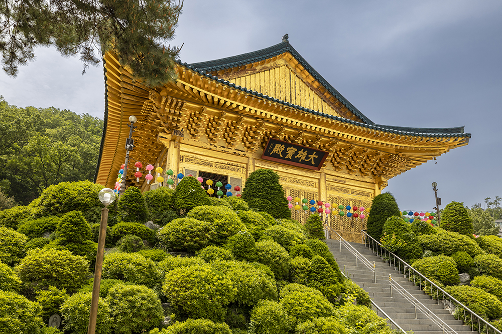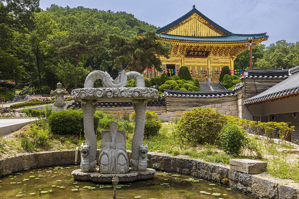 Това е един от най-интересните и красиви будистки храмове в Южна Корея. Повечето храмове са боядисани в червено и зелено, а този е изцяло в златно. Името на храма Сугукса означава „храмът, който защитава страната“. След пожар, храмът е оставен да се разпада, но през 1900 г. е възстановен. По това време синът на крал Годжонг се разболял. Кралят помолил монах Уол Чо да се моли за него. Молитвите изглеждали ефективни и кралят бил впечатлен и предложил на монаха богатство. Монахът отказал и вместо това поискал будистко светилище покрито със злато, което обикновените граждани да могат да посещават.