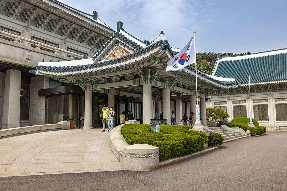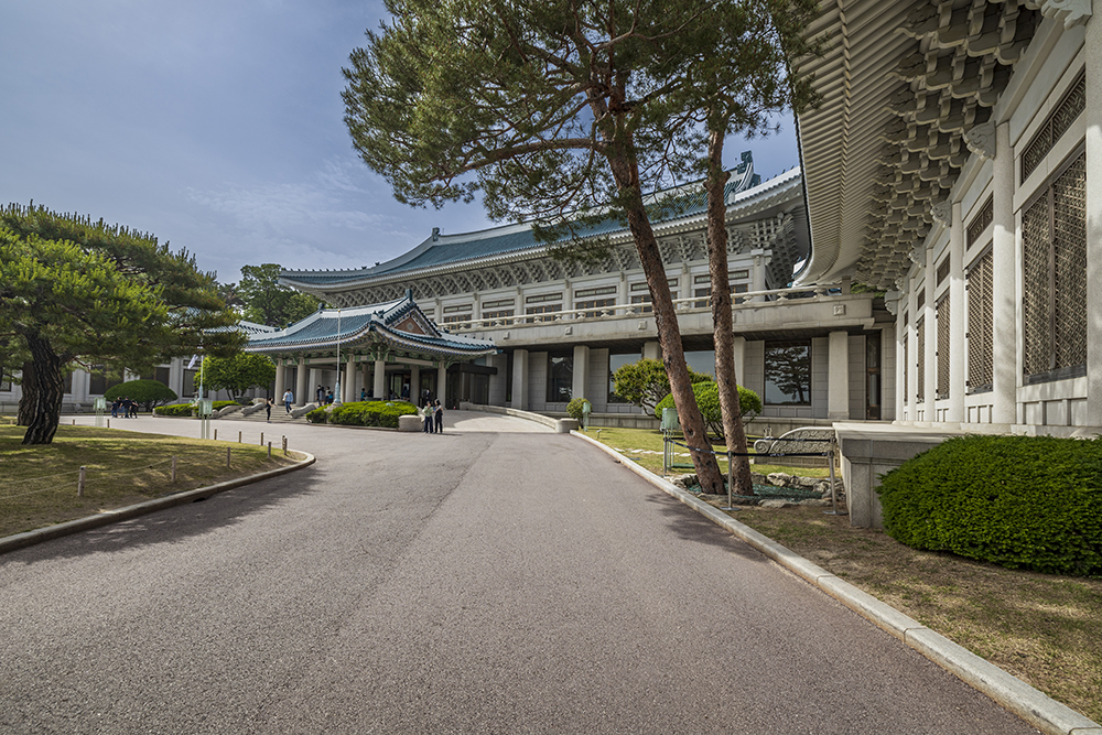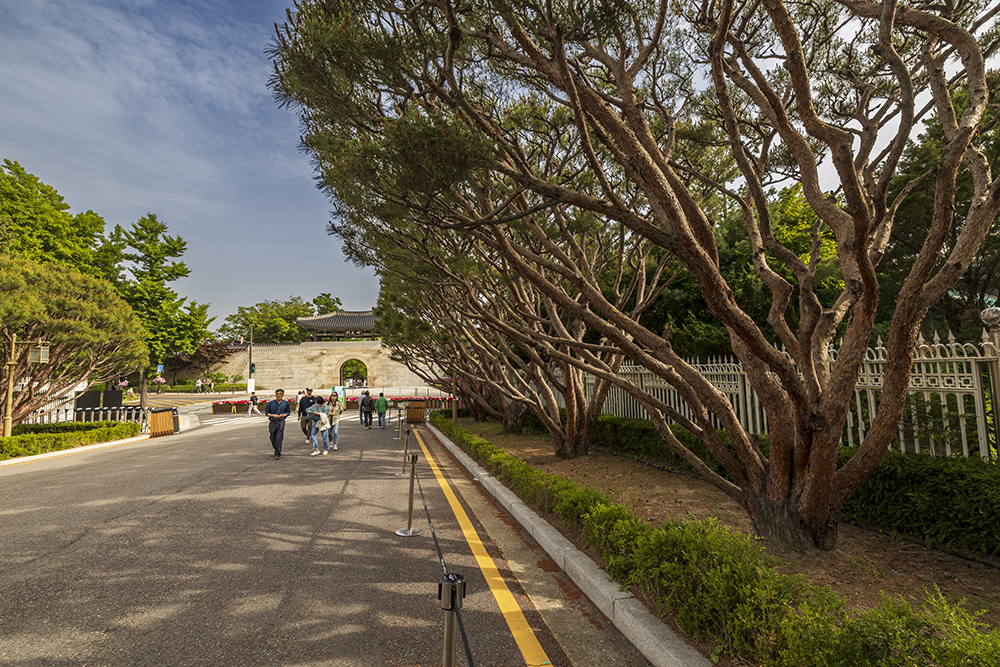 Следващата ми спирка е Синият дом. Това е бившият президентски дворец, който от скоро е отворен за туристи. Целият комплекс се състои от няколко сгради разположени в голям парк. Настоящият президент Юн Сук-Йол избран през 2022 г. решава да не живее и работи тук и мести офиса си в сградата на министерството на отбраната в квартал Йонгсан.