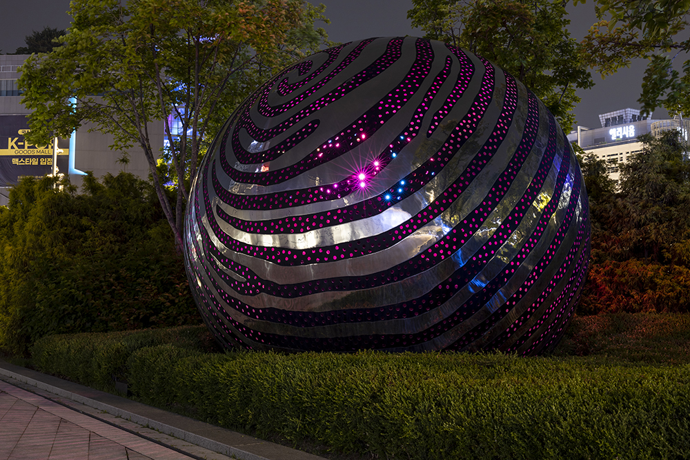 Зад централната гара на Сеул има малък площад с много готина арт инсталация, която е скрит скъпоценен камък за фотографите. От където и да я погледнете има различни ъгли за интересни кадри. Имаше фотограф с модел, които снимаха фото сесия.