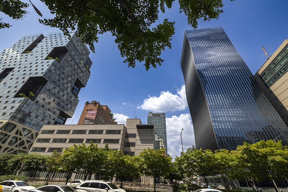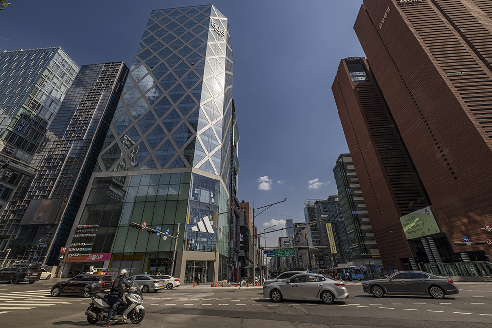 Районът всъщност е доста нов в сравнение с други квартали на Сеул, тъй като е построен и развит едва през 80-те години на 20 век. Съвременни сгради, широки булеварди и лъскави магазини на световни марки са разположени в Гангнам.