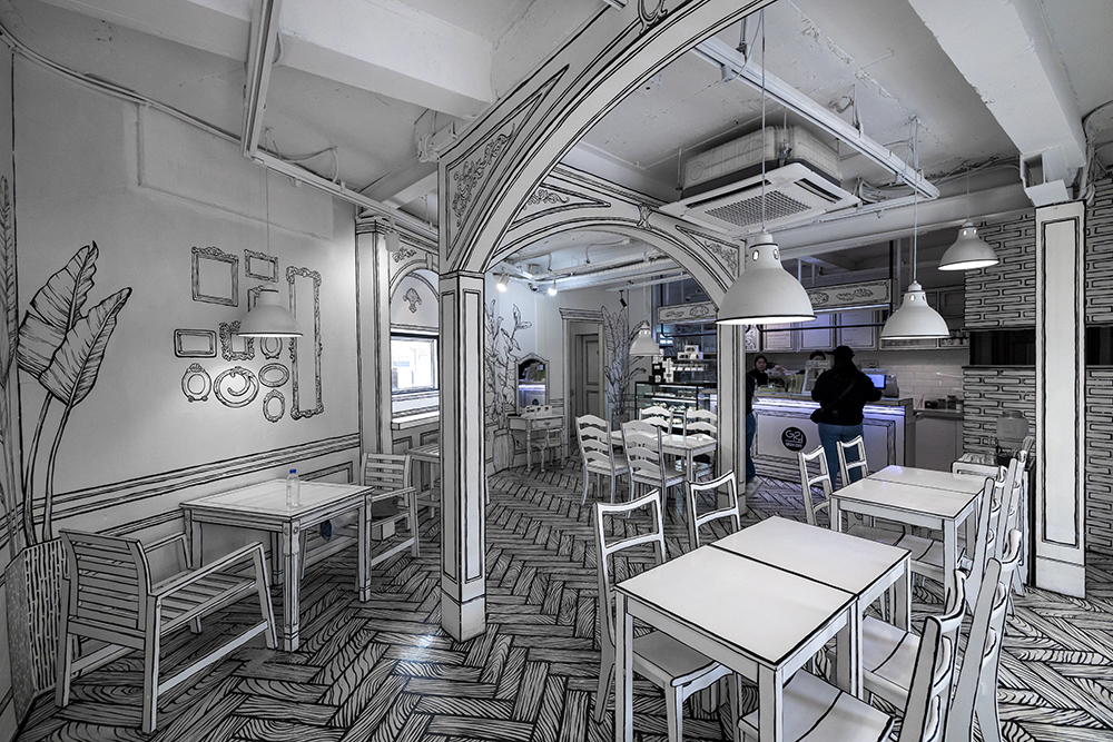 Преди няколко години видях това 2D кафе в Instagram. Реших един ден да изпия сутрешното си кафе именно там. Да, ама не. Кафето отваря в 12ч. на обяд. Наложи се да изчакам докато отворят, но определено си струва да се види.