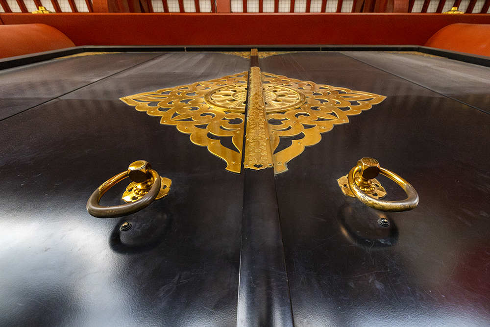 Най-очевидната характеристика на Главната зала е нейният драматично наклонен покрив, който е доста висок в сравнение с други храмове. Изключително елегантен и вдъхващ респект.