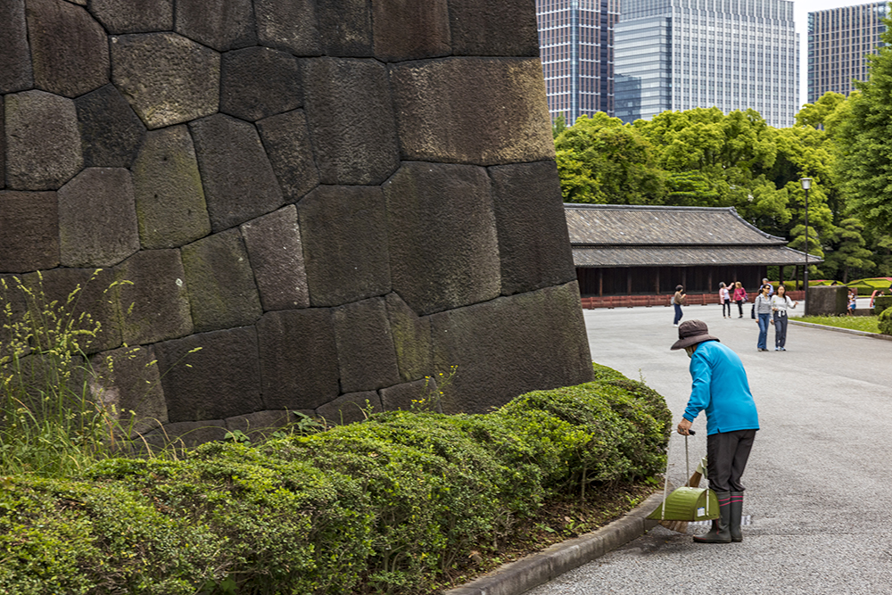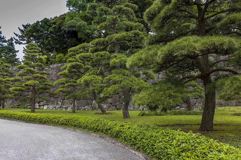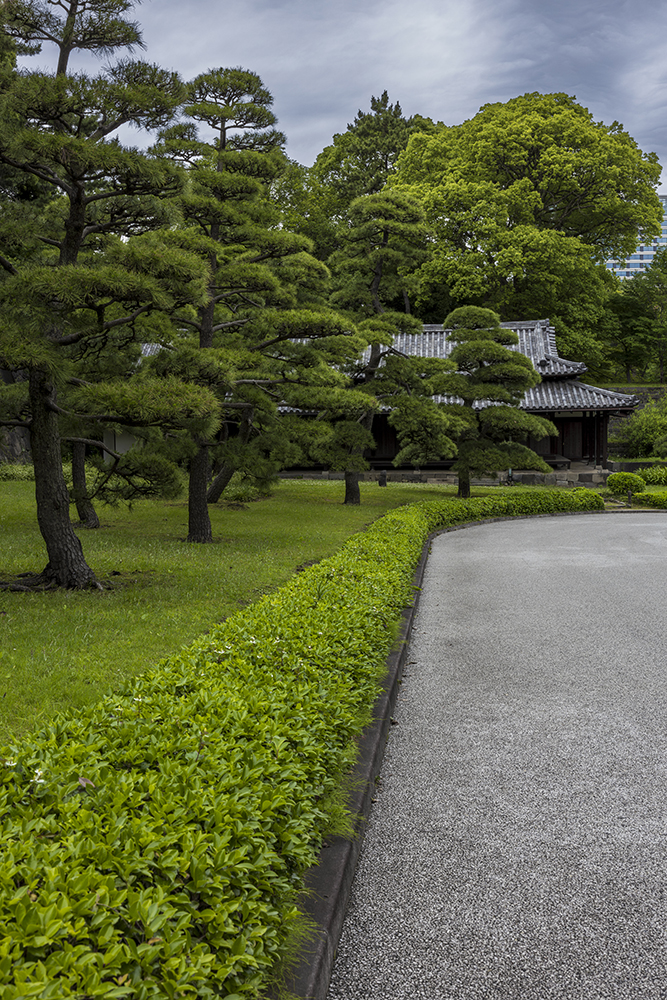 На следващата сутрин започвам от източните императорски градини. Изключително семпъл парк потънал в зеленина и изрядно окосена трева. Входа е през масивни порти построени по времето на шогуните Токугава. Император Мейджи е живял в двореца Нишиномару близо до Източните градини от 1869 до 1873 г., преди да се премести в новия дворец. В парка се виждат стените на стария замък.