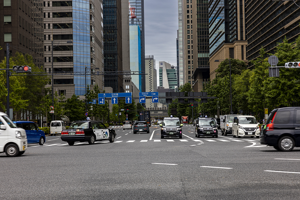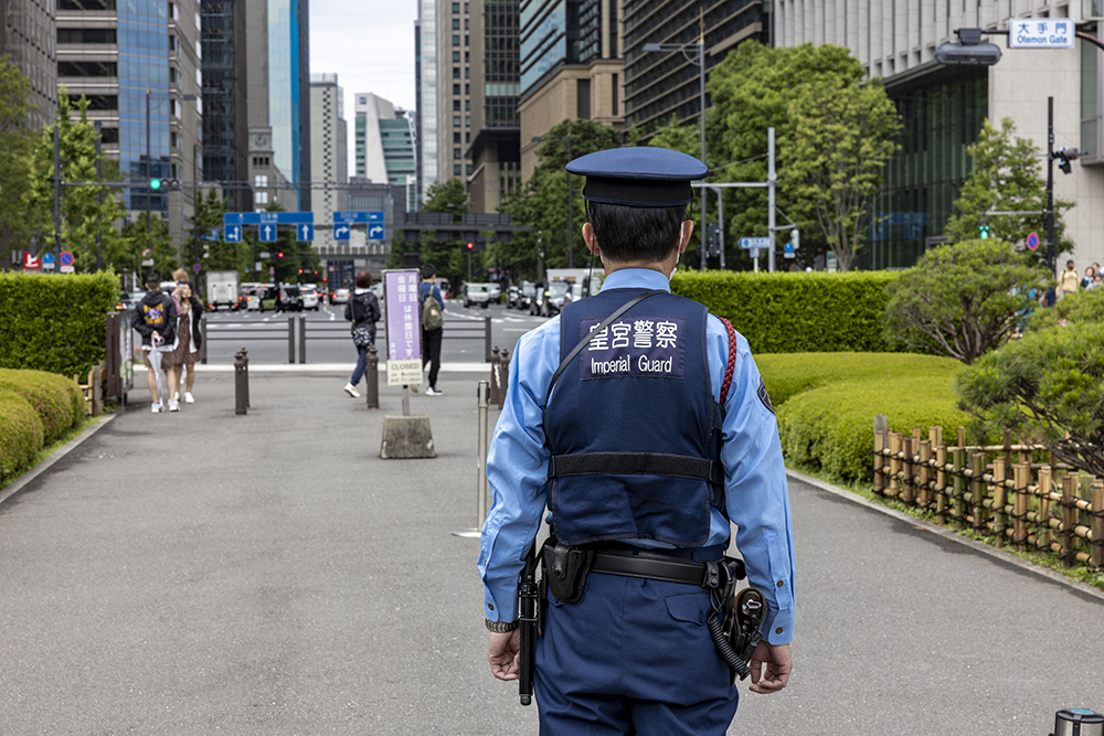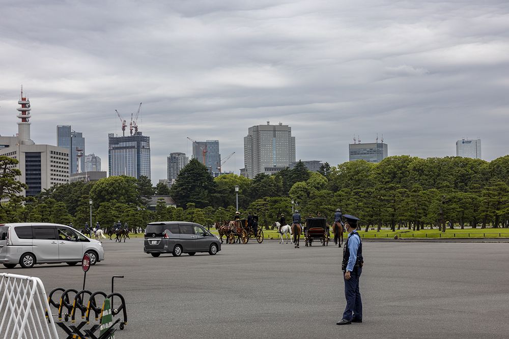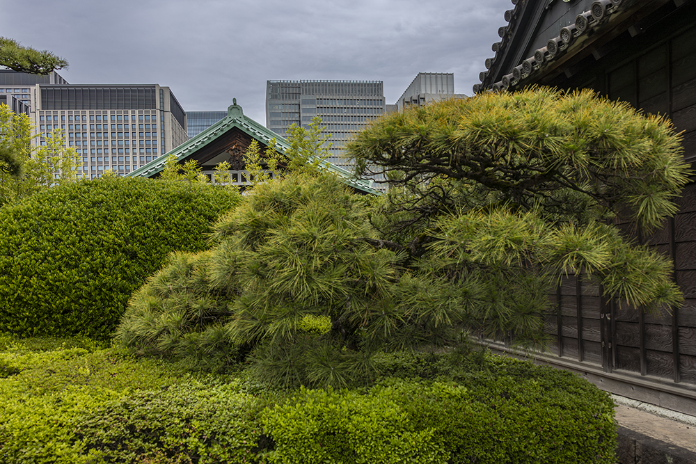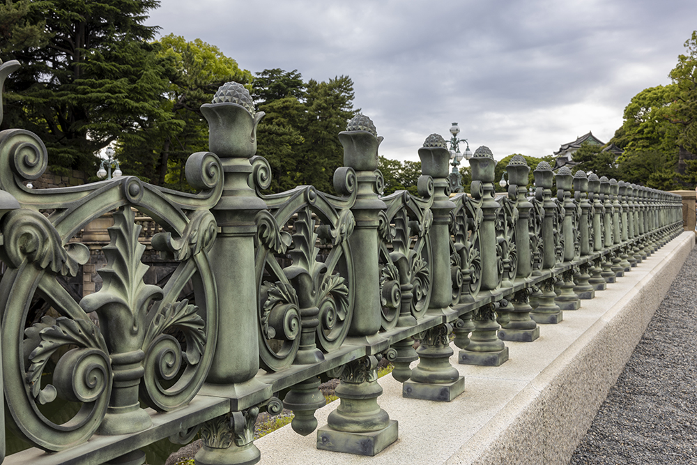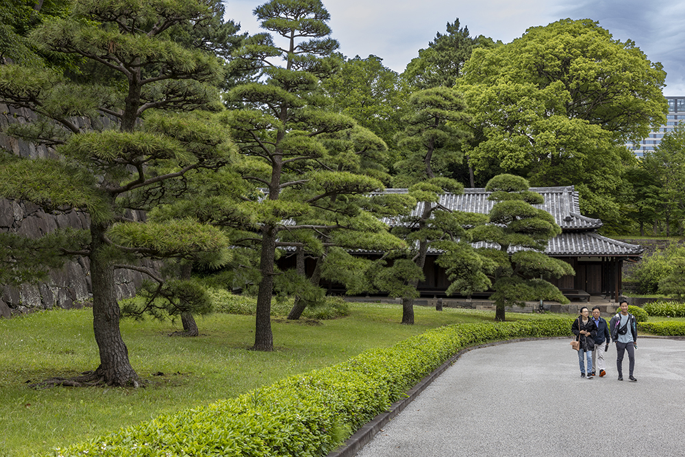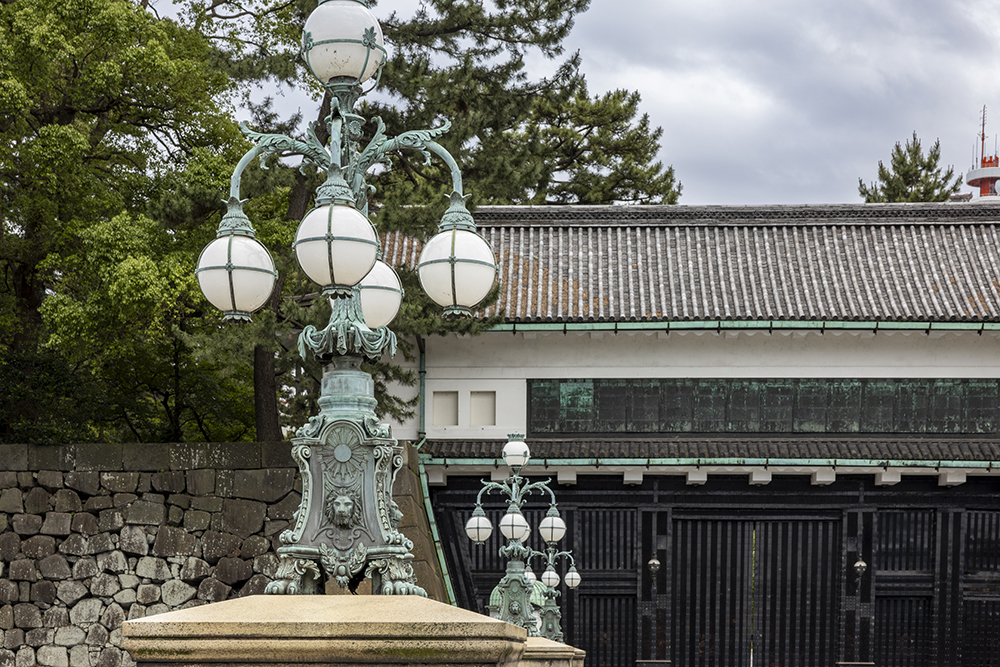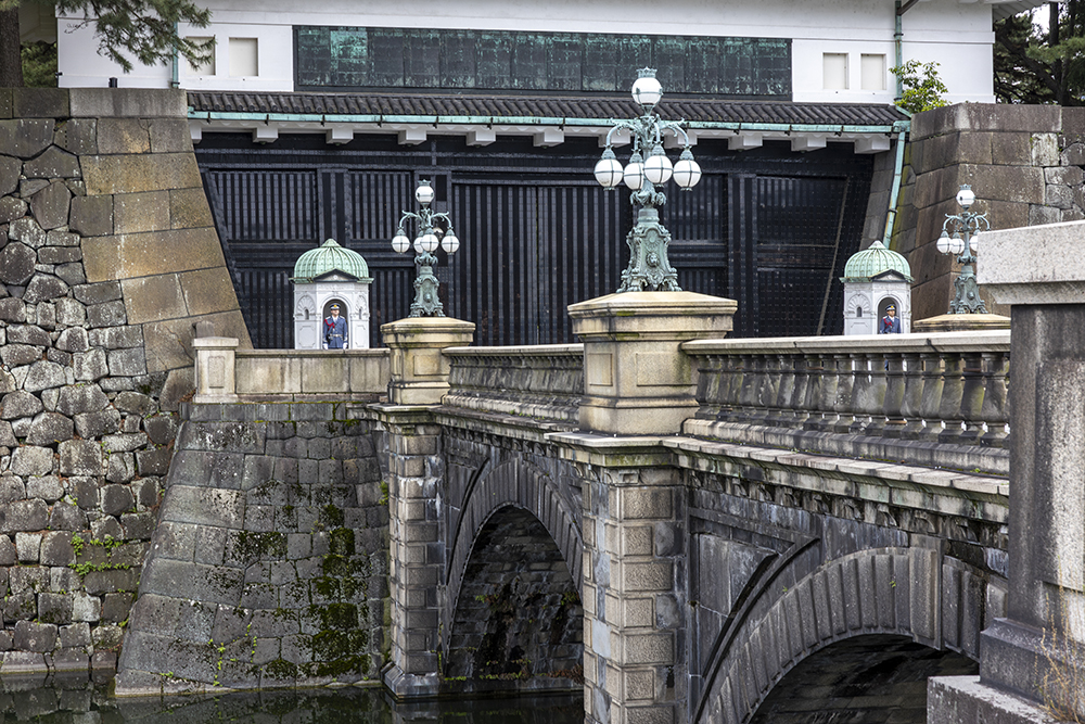 Императорският дворец е построен върху бившето място на замъка Едо – някога най-големият замък в света. Дворецът се вижда само отдалеч. Потънал в зеленина и заобиколен от воден канал. На преден план е моста Ниджубаши.