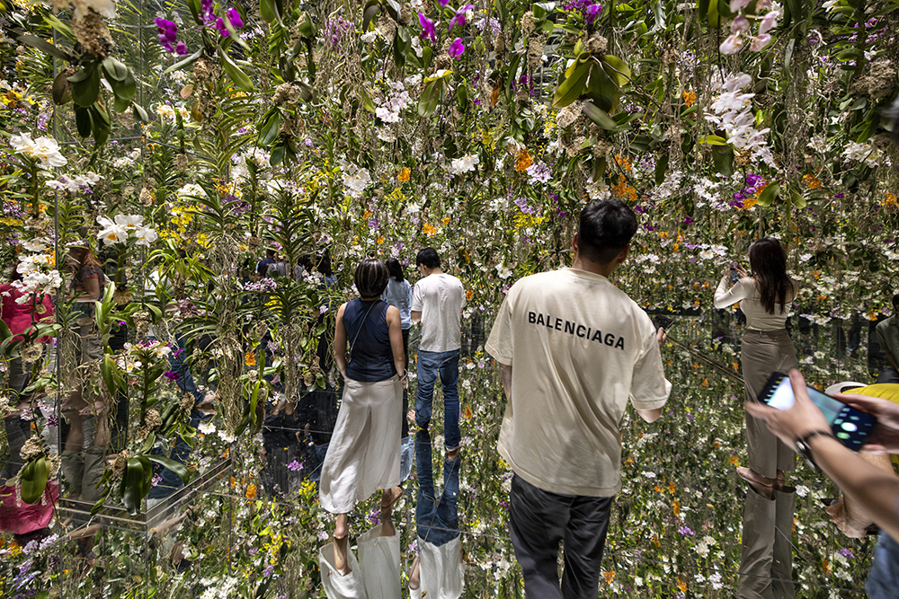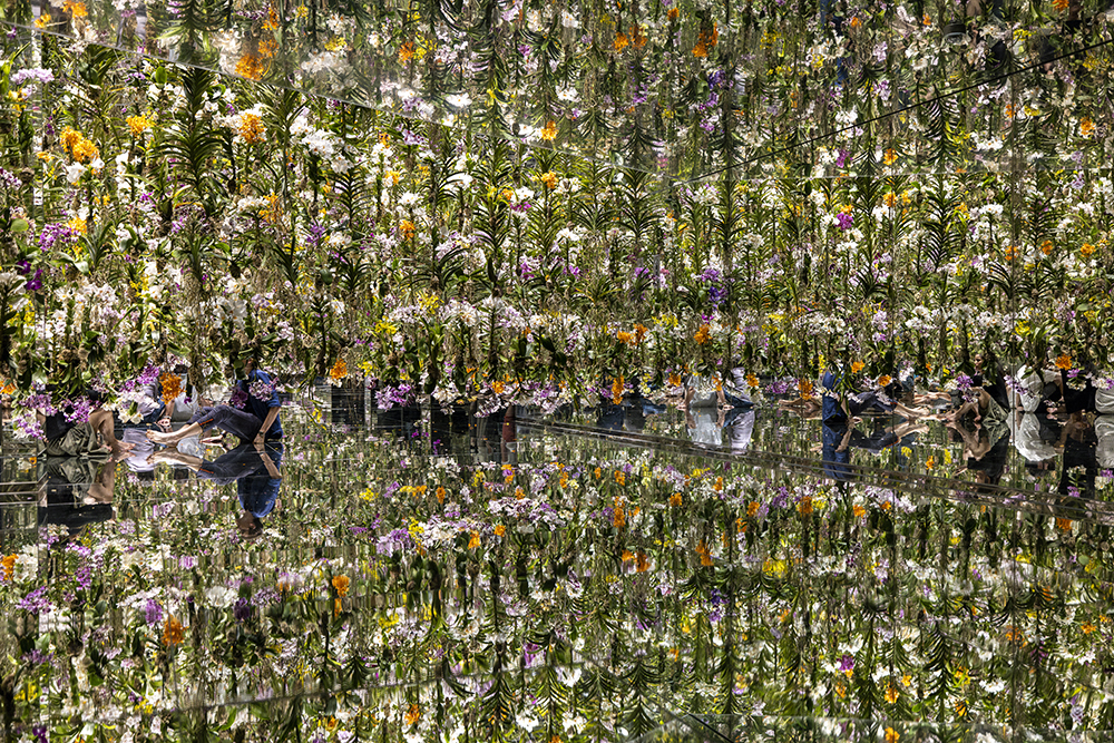 Пространството е изцяло изпълнено с цветя, които висят и се движат бавно вертикално. Пода, стените и тавана са огледални. Цветята в тази арт инсталация са живи орхидеи, растат и цъфтят с всеки изминал ден. Повечето орхидеи могат да растат без почва, като абсорбират вода от въздуха. Може да се каже, че растат във въздуха.