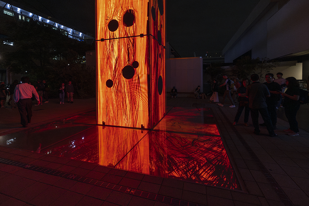 Поантилизмът използва натрупване на различни цветни точки, за да създаде картина. Тук светлинните точки се използват за създаване на триизмерни обекти. Светлинната скулптура се простира безкрайно във всички посоки. Пода, стените и тавана са покрити с огледала. А, в цялата зала висят хиляди лампички от тавана до пода.