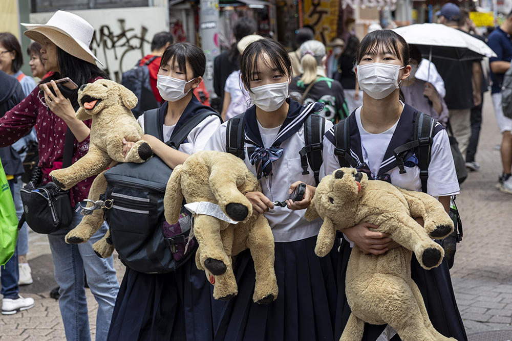 В единия ъгъл на кръстовището Шибуя има малък площад с мемориална статуя на кучето Хачико. Пред нея стоеше възрастен японец с жълта тениска, на която на гърба имаше надпис: Ще ви снимам безплатно, вземете си оригами. Имаше опашка от туристи. Всеки даваше телефона на този уличен фотограф за да го снима с паметника. След снимката си взимате едно оригами от кутия до него.
