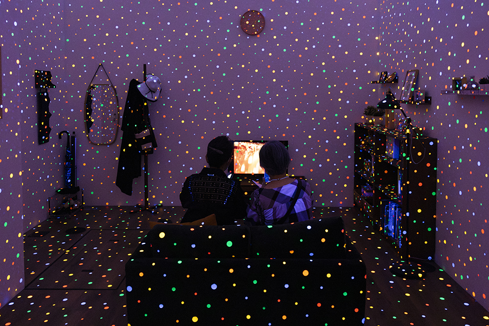 Тази изложба се фокусира върху психеделичните аспекти на работата на Кусама и представя богати вариации на нейните творения от различни периоди. Включва премиерата на най-новата й серия от шестоъгълни огледални стаи – представени за първи път на самостоятелната й изложба в Ню Йорк през втората половина на 60-те години на миналия век, както и филм и свързани материали, които се състоят от видеозаписи на събития. Тази изложба представя дейностите на Кусама по това време, които също са били движеща сила на психеделичното движение. Изложбата включва и рисунки от ранните години на Кусама, в които тя свободно изобразява вътрешните си образи, както и такива, създадени след завръщането й в Япония, като акрилни картини в ярки цветове, големи триизмерни творби, инсталация, използваща черна светлина, кратки видеоклипове и литературни произведения.