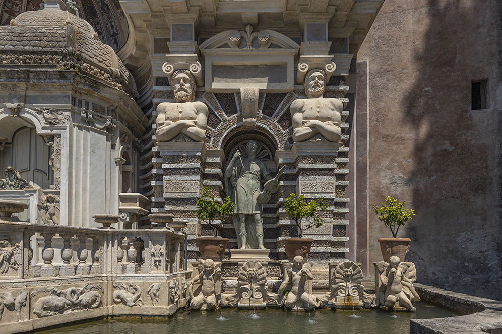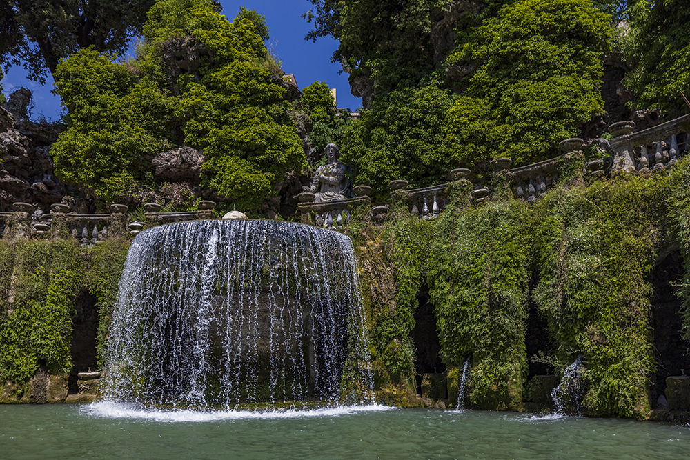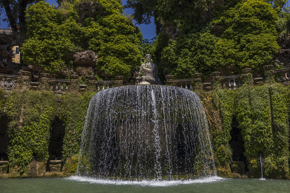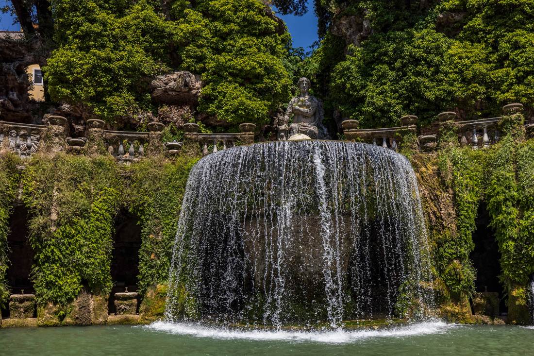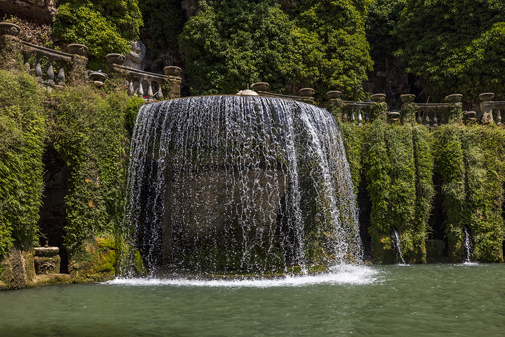 Внушителния овален фонтан, по-известен като фонтана Тиволи е архитектурен шедьовър, завършващ известната пътека на стоте фонтана. Заобиколен е от много зеленина, а водата пада в голям басейн.
