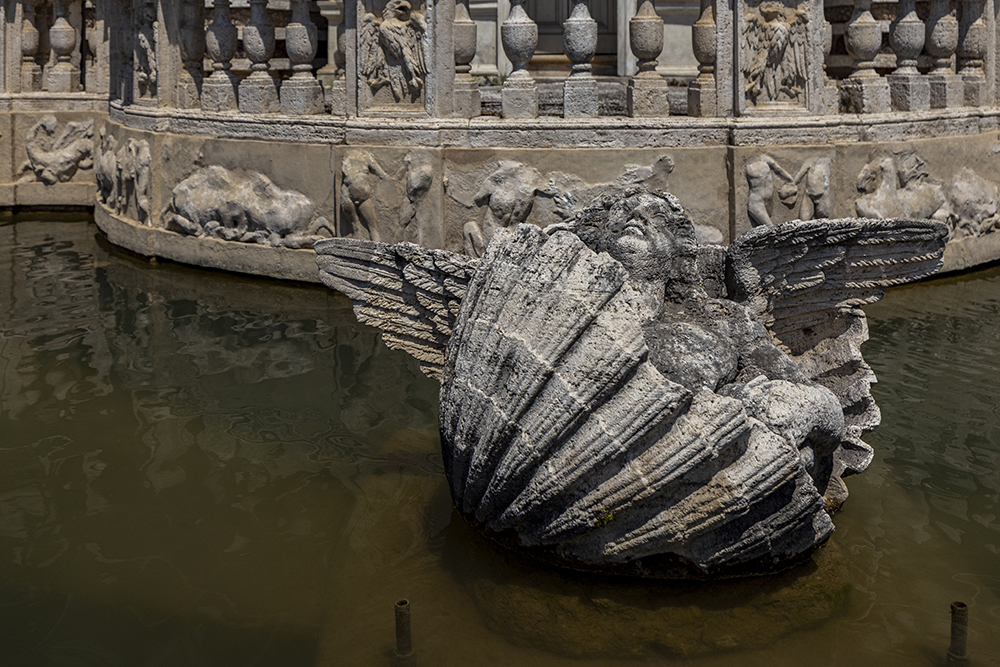 Водата е главната забележителност тук. Повечето от фонтаните в градината са истински театри на водата. Пред фонтана на Нептун има няколко басейна с риба.