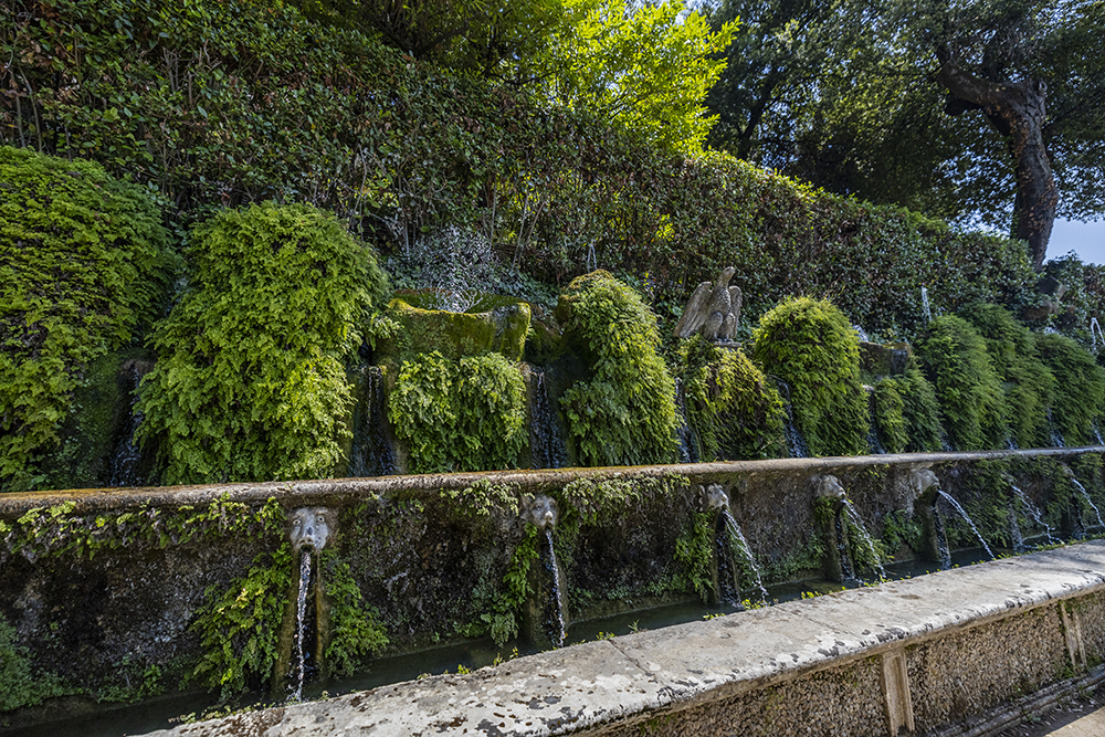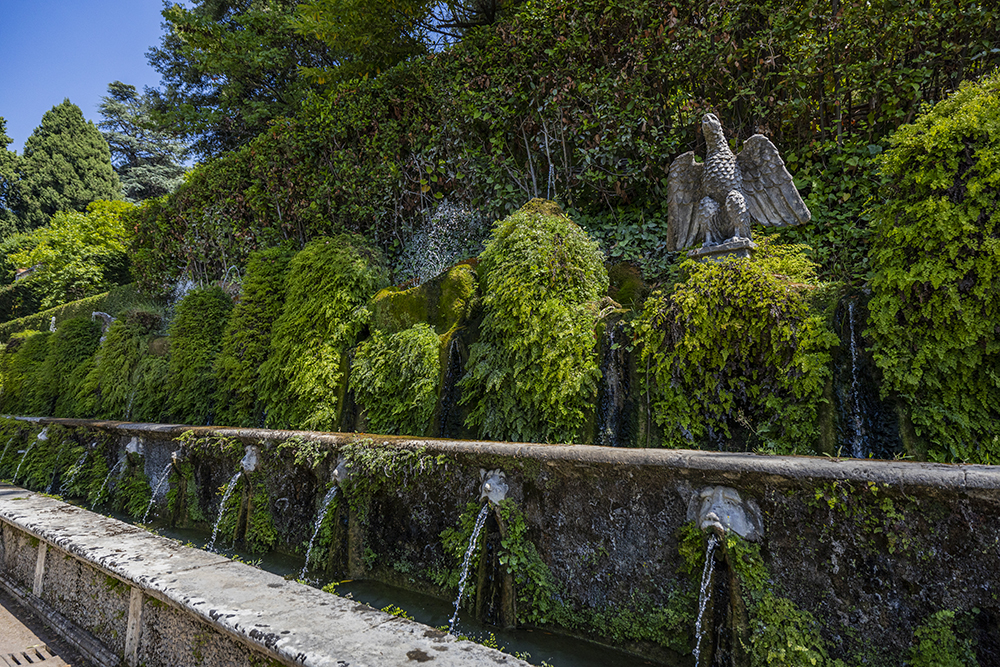 По алеята на стоте фонтана, над самите фонтани има статуи на римски орел и египетски обелиск, които се редуват. През 16 век градината и фонтаните на вила д’Есте са се смятали за осмото чудо на света заради своето великолепие.