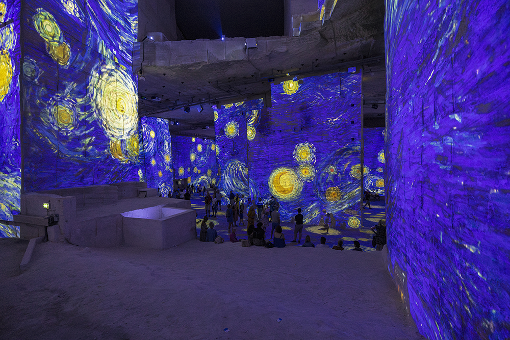 Първата спирка беше музея Carrières des Lumières. Представлява фантастичен център за дигитално изкуство, направен в бивша каменна кариера. Именно тук, класическото изкуство оживява благодарение на съвременните технологии. Изложбата, която течеше когато ние бяхме там беше посветена на Нидерландските майстори – Рембранд, Мондриан, Вермеер, Ван Гог и др.