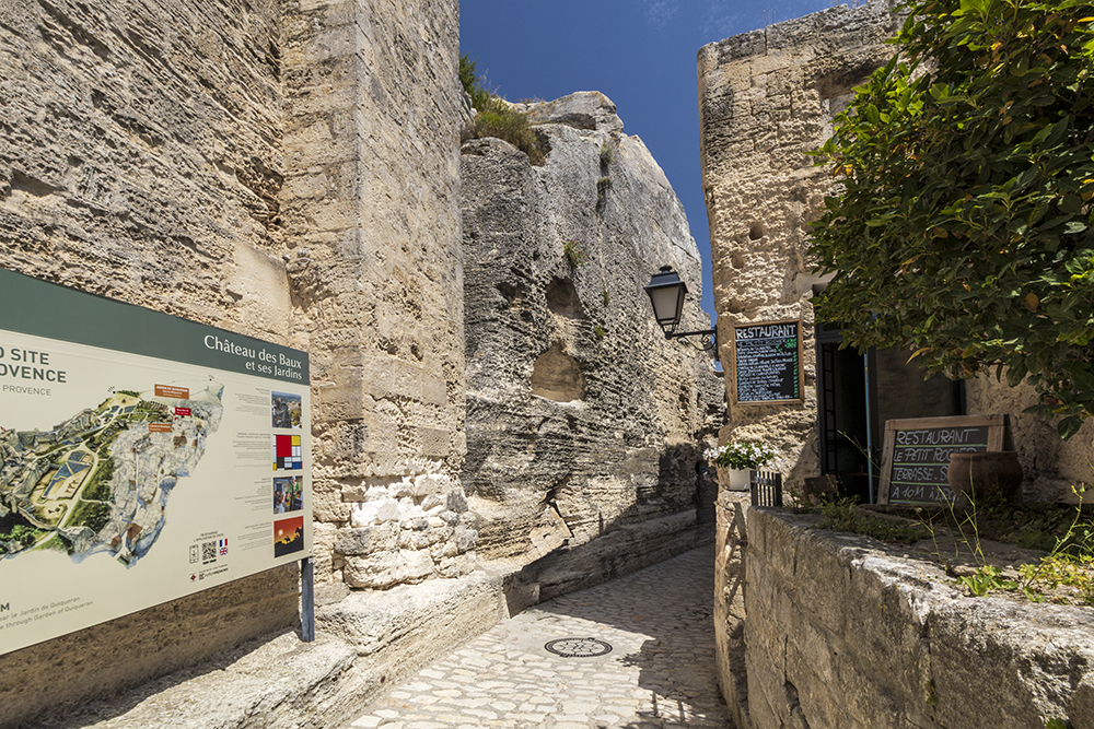 От най-високата точка има гледка към лозя и хиляди маслинови дръвчета, от които се произвеждат някои от най-добрите бутикови марки вина и зехтин в Южна Франция. На върха има останки от средновековна крепост Château des Baux-de-Provence.