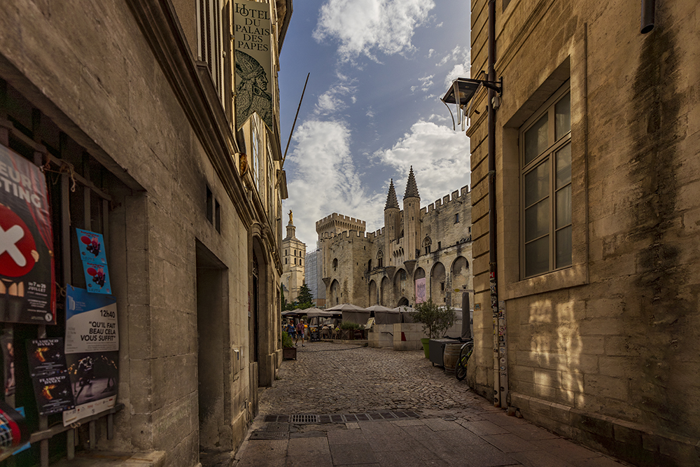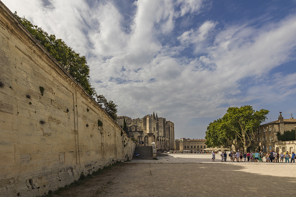 Това е най-голямата забележителност на Авиньон и главната причина туристите да посещават града. Дворецът на папите прилича повече на крепост, отколкото на дворец. Богатата украса на Ватикана, която сме виждали, я няма тук. В двореца са живяли девет папи (седем папи и двама схизматични папи) през 14-ти век, когато Авиньон е бил централно седалище на папския римокатолически престол и столица на християнството.