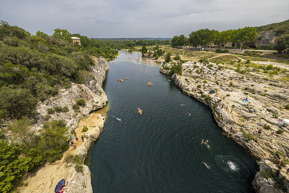 В околностите на акведукта по бреговете на р. Гардон, хората се пекат, карат каяци, плуват в реката и си правят пикник с красива гледка.