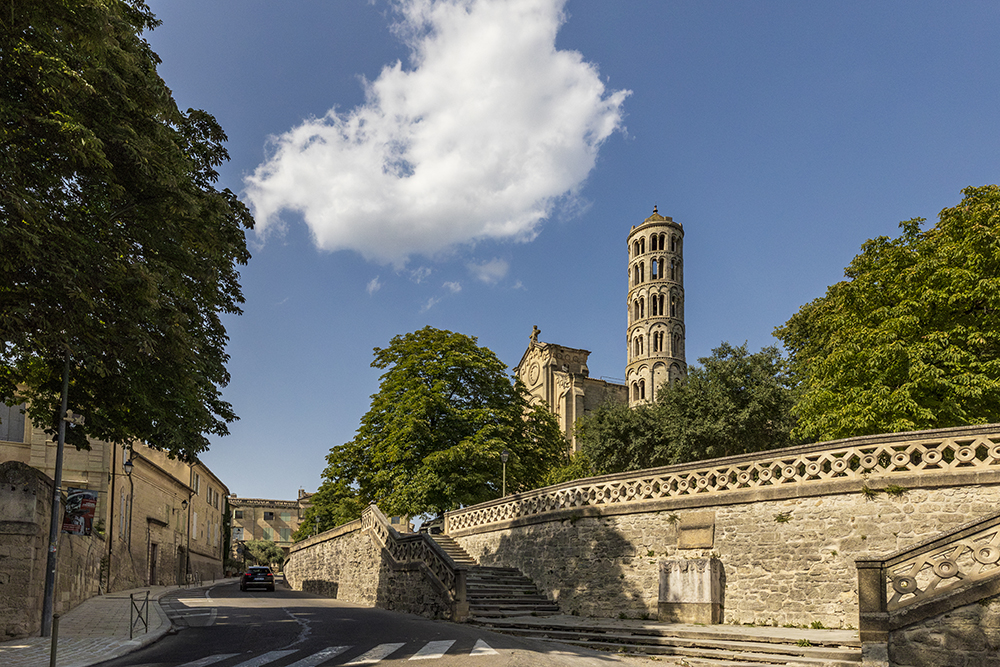 Катедралата на Узес е бивша римокатолическа църква посветена на Свети Теодорит, а сега е енорийска църква. Катедралата е била разрушена по време на Френската революция и след ремонт е добавена неокласическа фасада от 19-ти век. Камбанарията е единствената част, оцеляла от средновековната структура, въпреки че преди това е била по-висока с два етажа.