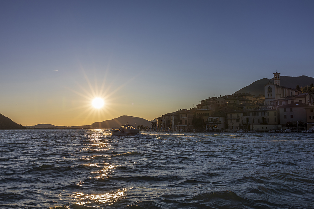 Изпратихме София със сняг, а кацнахме в Италия със слънце и приятни температури за Ноември. Разходката ни на езерото Изео започна от Монте Изола. Мястото, където Кристо реализира проекта си „Плаващите кейове“ през 2016 г. Пътуването с корабче между Сулцано и Монте Изола отнема по-малко от 10 минути. Слънцето залязваше, но това не ни спря да се разходим по крайбрежната улица на един от най-големите езерни острови в Европа.