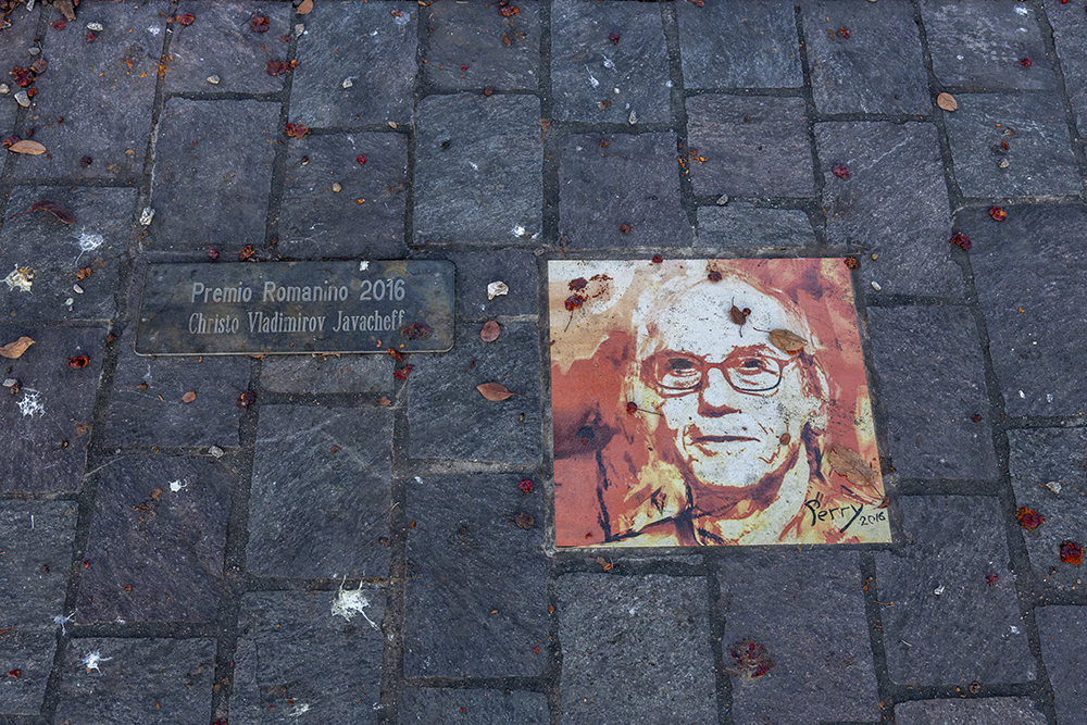В късния следобед посетихме и Пизоне. Намира се на отсрещния бряг, точно срещу Ловере. Отново разходката ни беше покрай езерото. На самата крайбрежна алея имаше поставени плочки в хронологичен ред с лицата спечелили наградата Романино – признание, което Община Пизоне присъжда на онези личности, които са се отличили с ангажимента си към изкуството и културата. През 2016 г. безпорно това е Кристо.