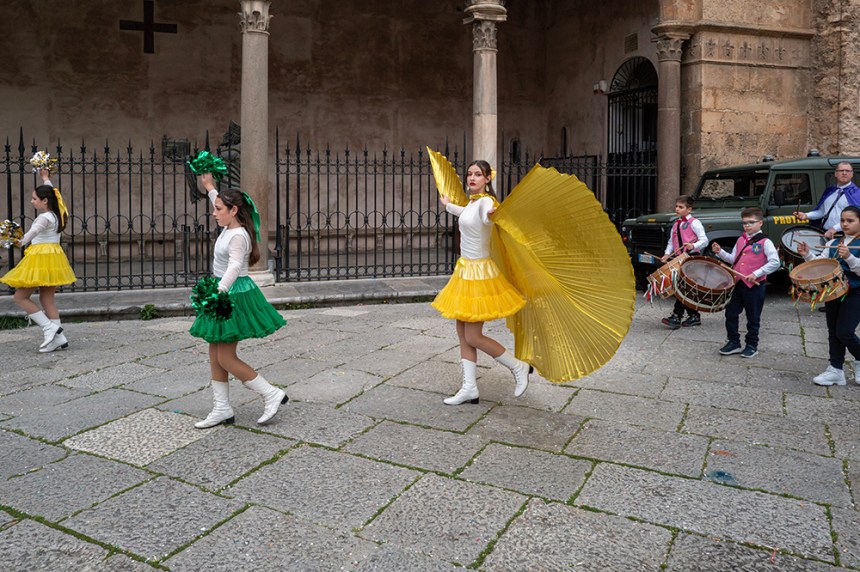 Само на няколко километра от Палермо е малкото градче Монреале. Известно е с катедралата и бенедиктинския манастир. В денят, в който бяхме там се оказа Карнавала на Монреале. Фолклорната асоциация „Tamburinai e Majorettes di Aspra“ изнасяше представление по улиците на града със сицилиански барабанисти и танцуващи пеперуди. Звукът от барабаните беше оглушителен и се усилваше все повече.