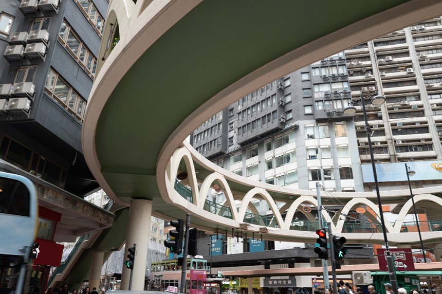 В близост е извитата стъклена фасада на офис сградата The Henderson от Zaha Hadid Architects. 36-етажният небостъргач е една по-нова забележителност за града. Органичната форма на сградата е вдъхновена от пъпките на хонконгската орхидея, която краси знамето на града, предлагайки подчертан контраст с по-традиционните небостъргачи наблизо.