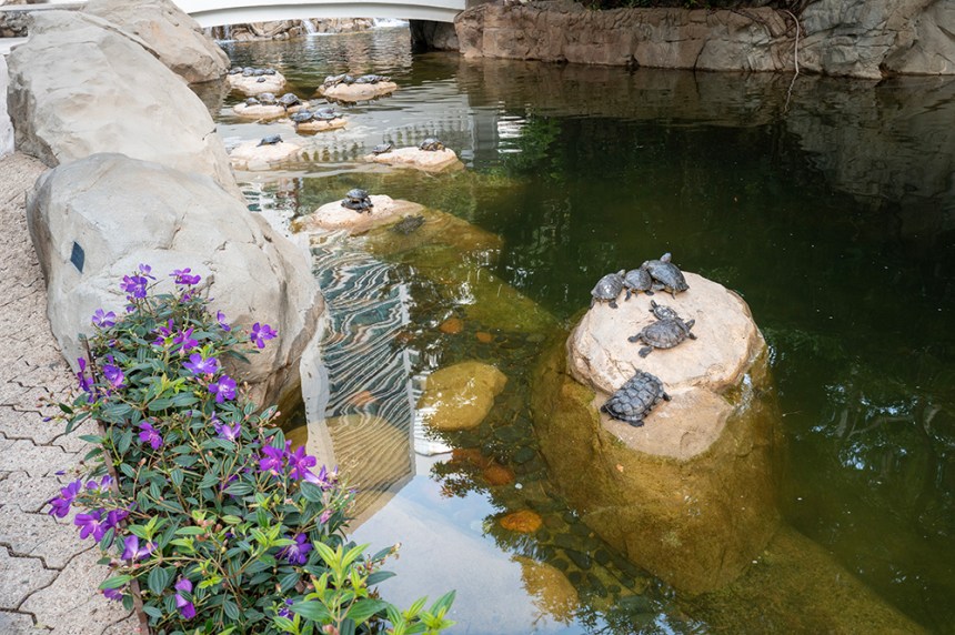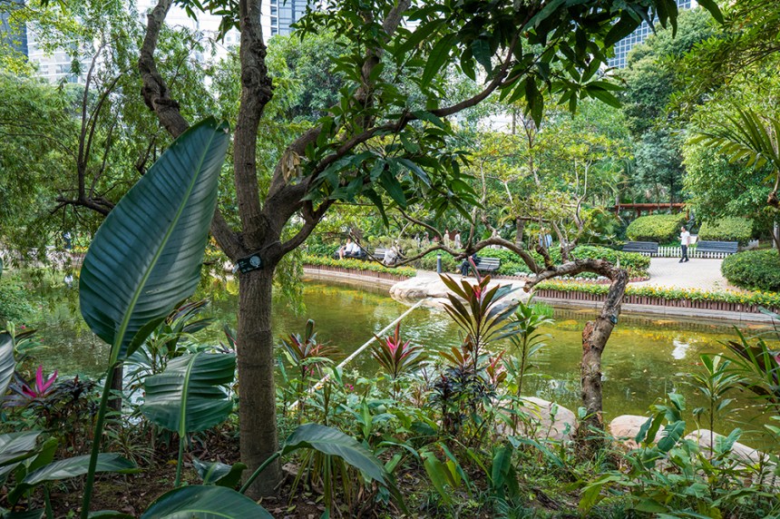 В този вертикален свят дори и централния парк е разположен леко вертикално на хълм. Чудесен зелен оазис между стъклените фасади на небостъргачите. Алеите се изкачват или спускат по наклона с хубави гледки към изкуствено езеро с костенурки. И тук стълби не липсват. Звукът от падащата вода от изкуствения водопад създава усещане, че сме далеч от града, сред природата. Но, когато човек погледне нагоре между листата на дърветата вижда лъскавите небостъргачи наблизо.