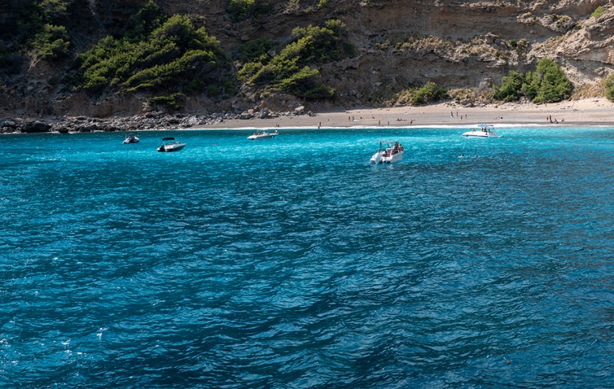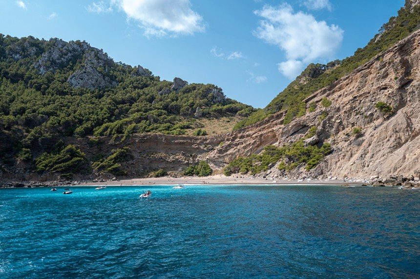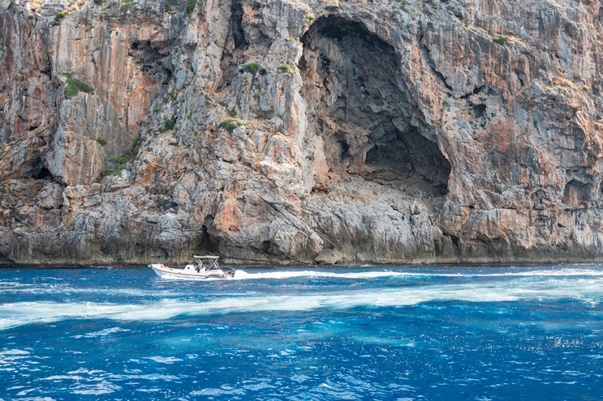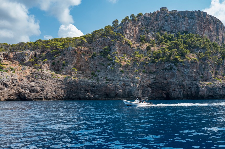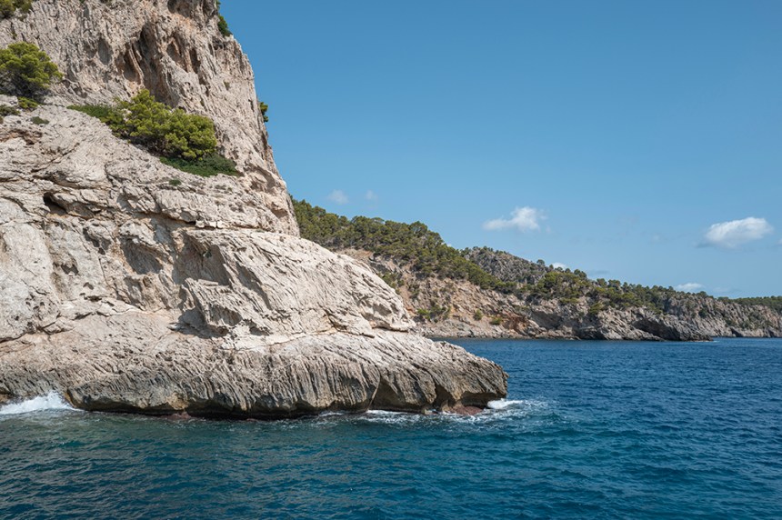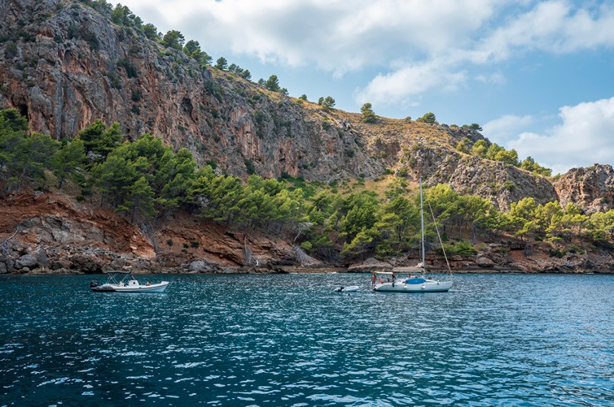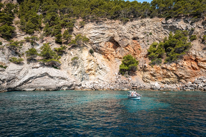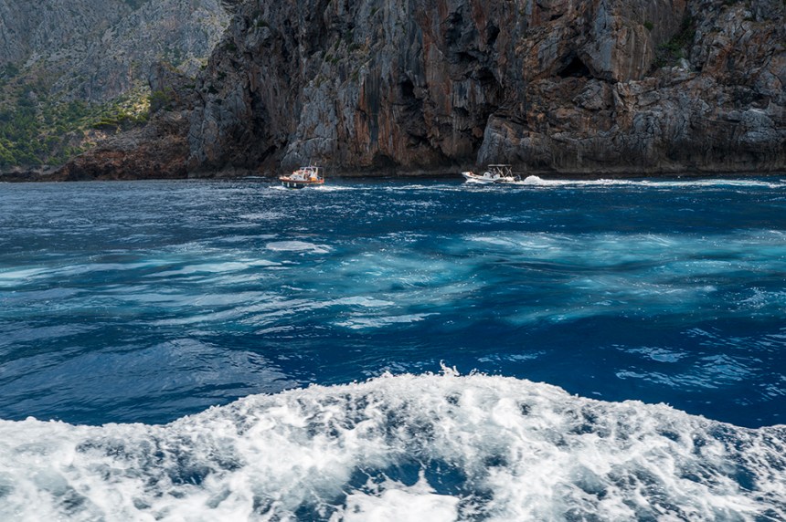 Качихме се на корабче за разходка от пристанището до залива Са Калобра. Плавахме по назъбената брегова линия и се наслаждавахме на страхотни гледки. Бяхме седнали на носа и босите ни крака бяха над водата. От време на време малки вълни заливаха краката ни с топла средиземноморска вода. Изживяването беше разкошно.