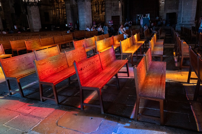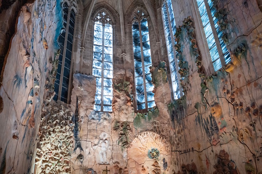 Параклисът „Светото тайнство“ на Микел Барсело се намира в апсидата, вдясно от главния олтар. На пръв поглед е стряскащо грубо произведение. Голяма теракотена пещера. Но под вода. Водорасли украсяват прозорците и стените. Това е картина, където глинена скулптура изригва от платното. Огромна глинена диорама, изпечена твърде бързо в огромна пещ, така че глината е развила модел от дълбоки пукнатини.