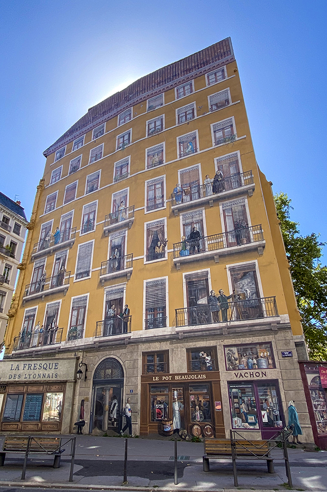 Това е изрисувана стена с площ от 800 м² която, представя 2000 години история с 25 исторически и 6 съвременни личности от Лион. Създадена е от Cité de la Création през 1994/95 г. На лявата снимка на първият балкон са Малкият принц и Антоан дьо Сент Екзюпери.